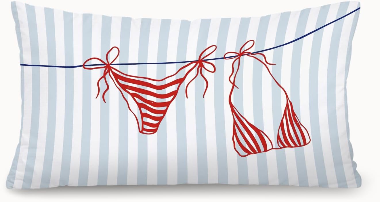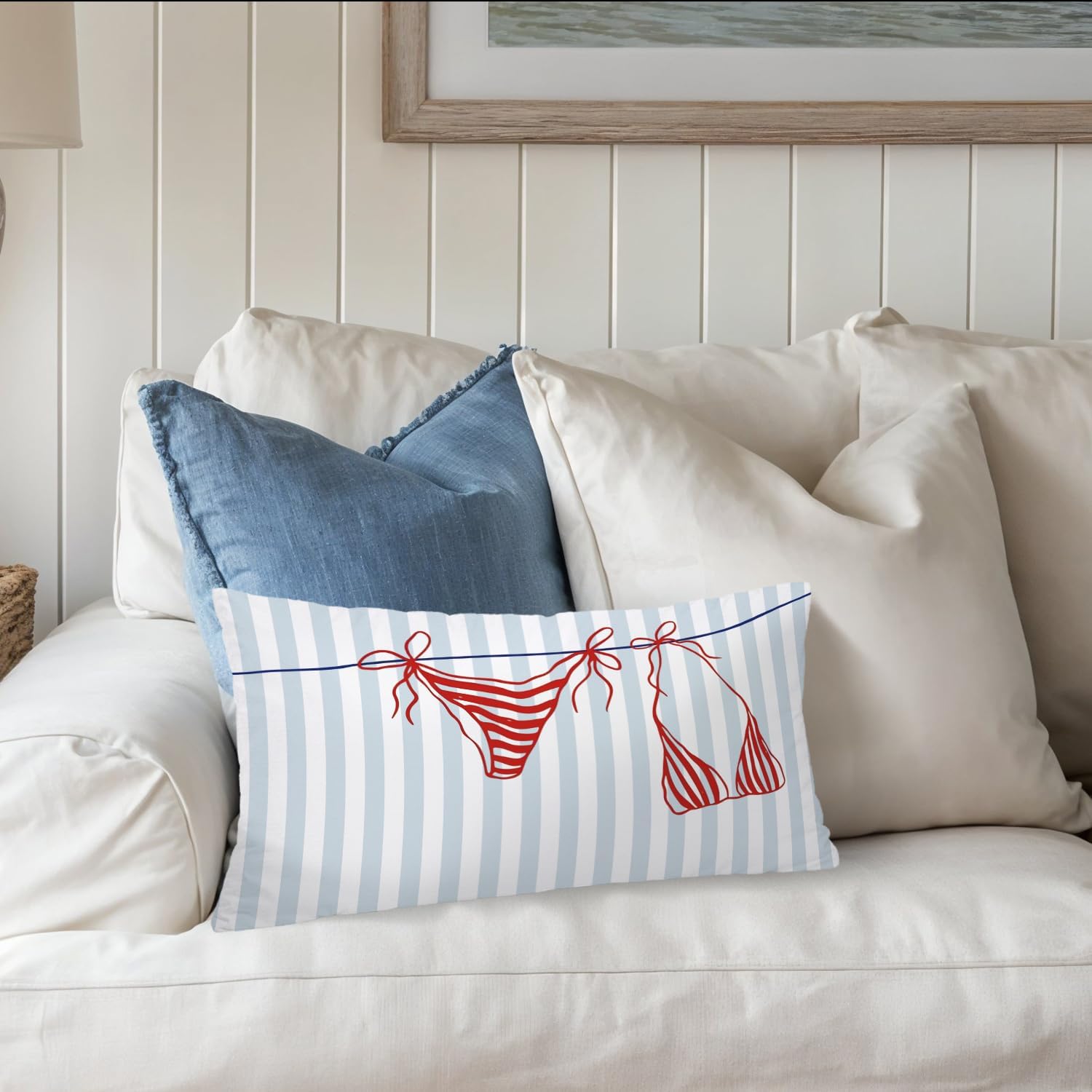 Blue Coastal Dorm Preppy Beach Girly Room Decor 12x20 Bikini Pillow Cover, Coastal Striped Decorative Lumbar Pillow Covers for Girls Bedroom College Dorm Sofa Couch