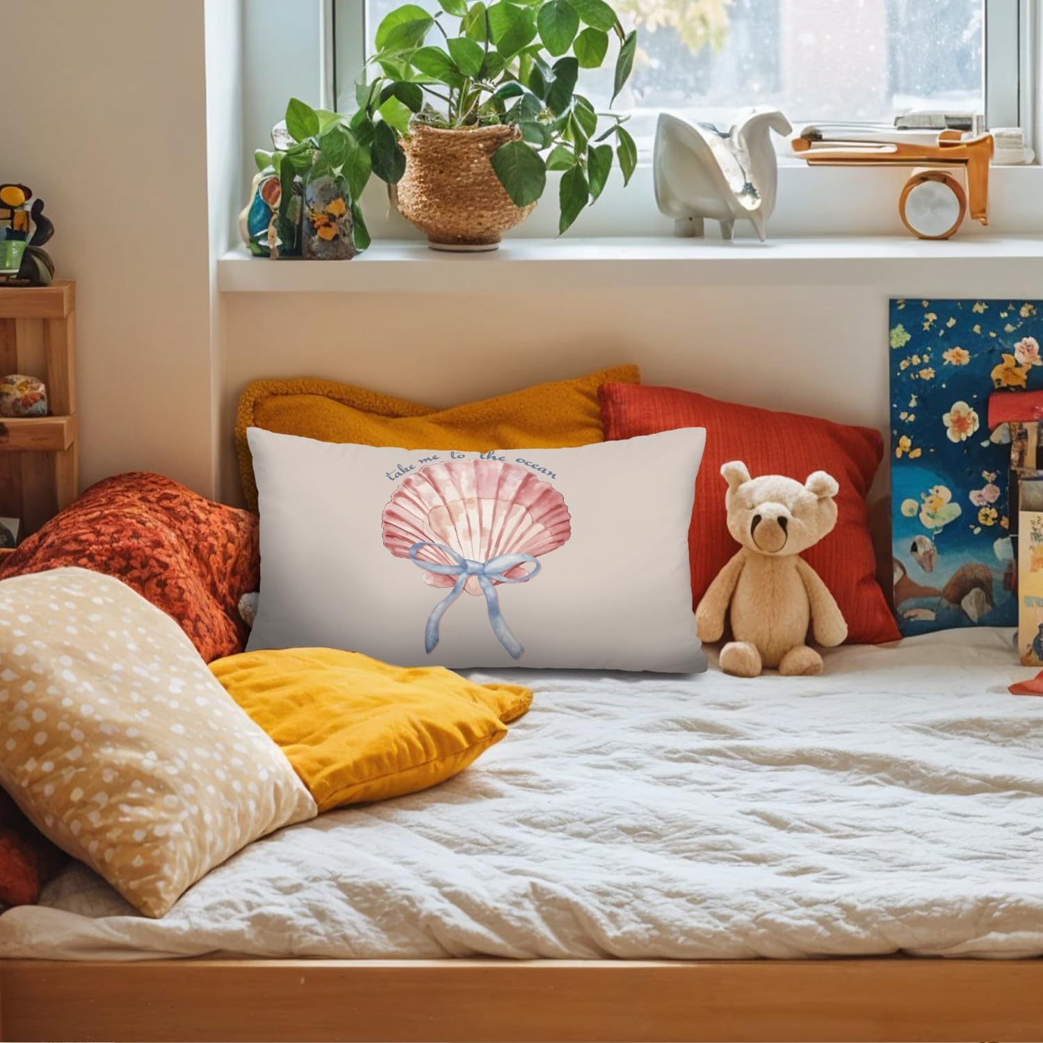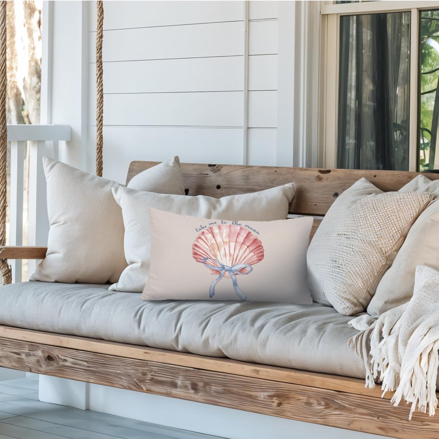 Coastal Girly Room Decor Aesthetic 12x20 Pillow Cover, Take Me to The Ocean Coquette Bow Seashell Decorative Lumbar Pillow Covers for Girls Bedroom College Dorm Sofa Couch