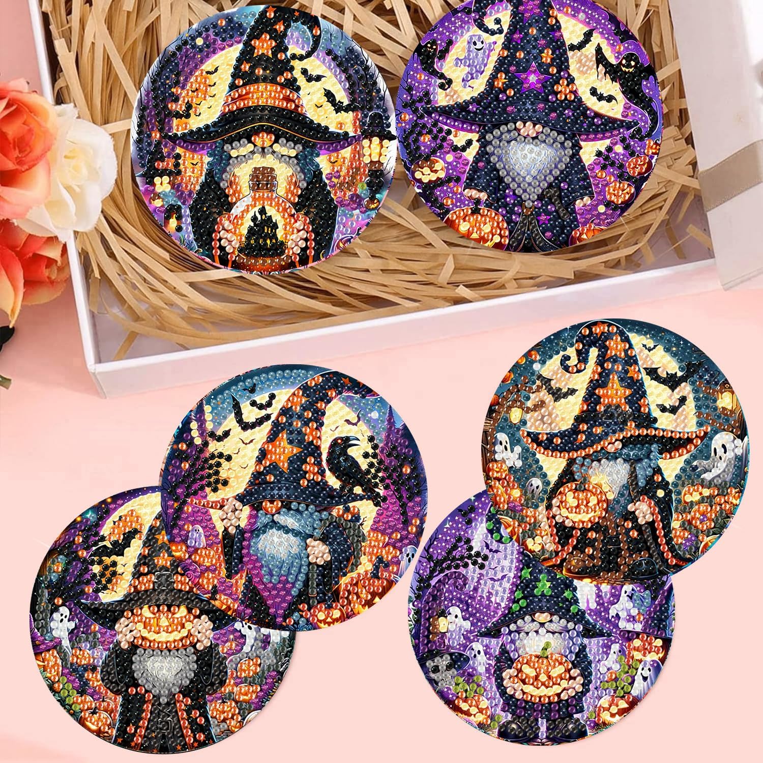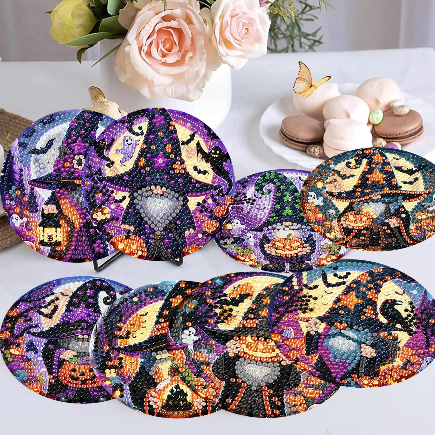 - Halloween Diamond Art Coasters: This DIY Gnomes Diamond Art Coaster kit includes 8 Diamond Coasters, 8 adhesive non-slip cork bases, 1 Set of Colored Diamonds, 1 Coaster Holder, 1 Pen, 1 Clay, 1 Diamond Painting Tray, And give enough extra diamonds are provided to meet all your creative needs.