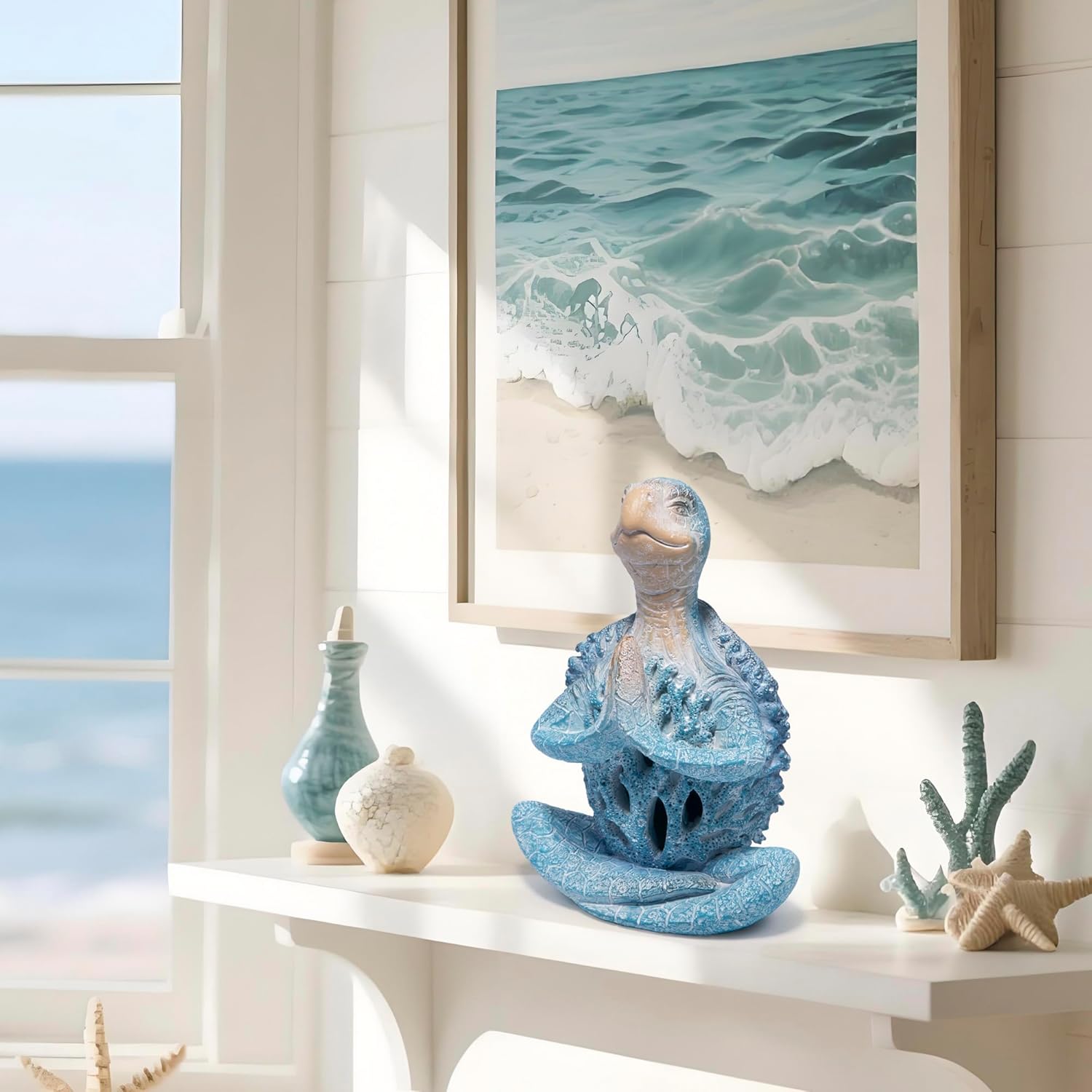 Hodao Coral Reef Sea Turtle Meditation Yoga Decor, Garden Figurines Turtle Meditating Coastal Beach Decor, Zen Yoga Resin Statue for Home Office Table & Shelf Decorations, Retirement Gifts