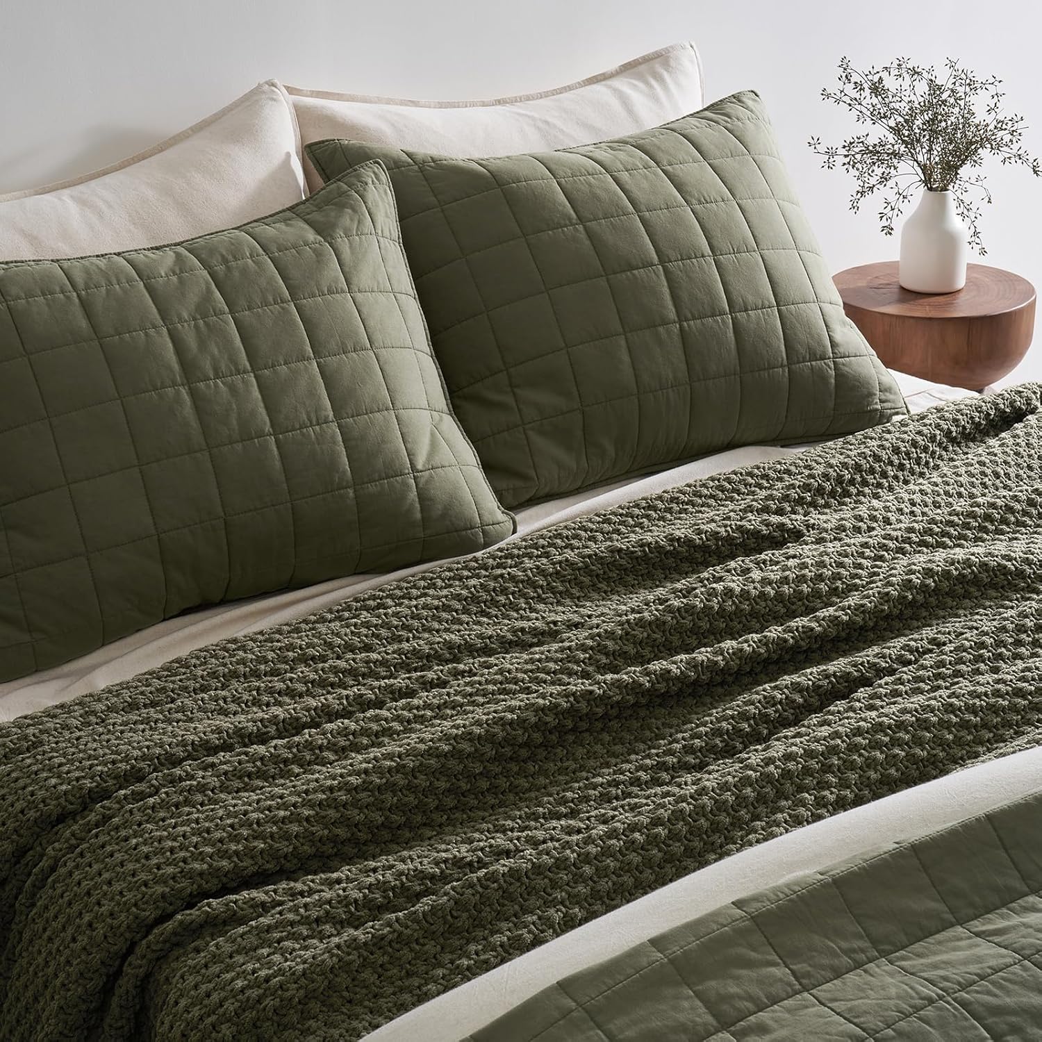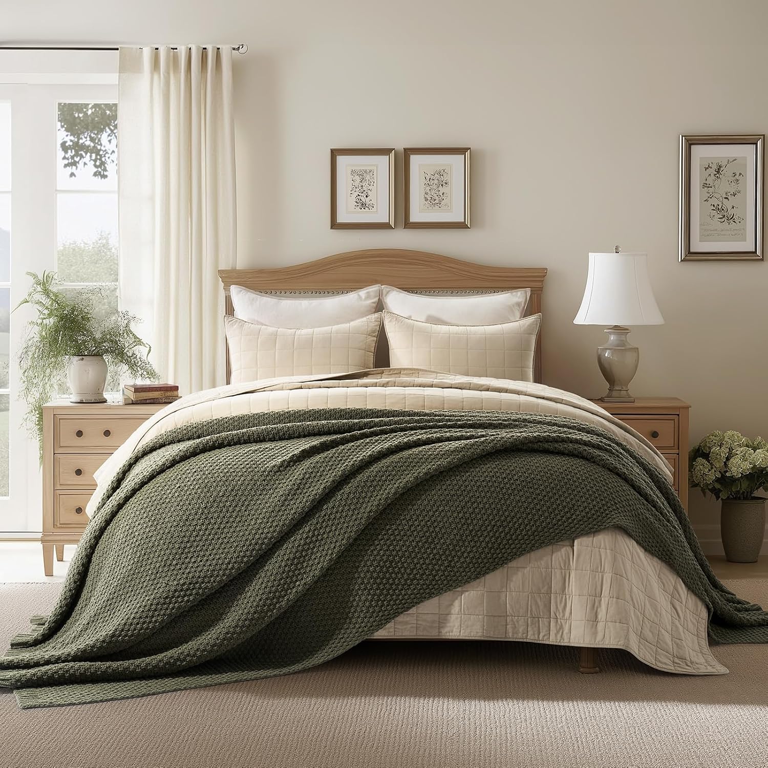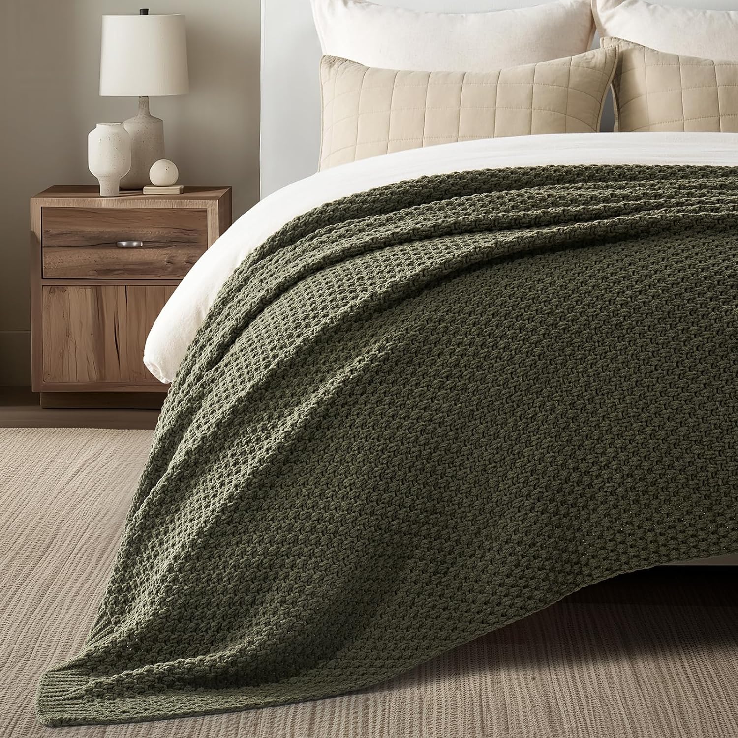 EVERGRACEHOME Chunky Chenille Knit Throw Blanket for Couch, Soft Luxurious Oversized King Moss Stitch Blanket for Bed, Large Cozy Farmhouse Knitted Throw for Sofa, Olive Green, 92" x 108"