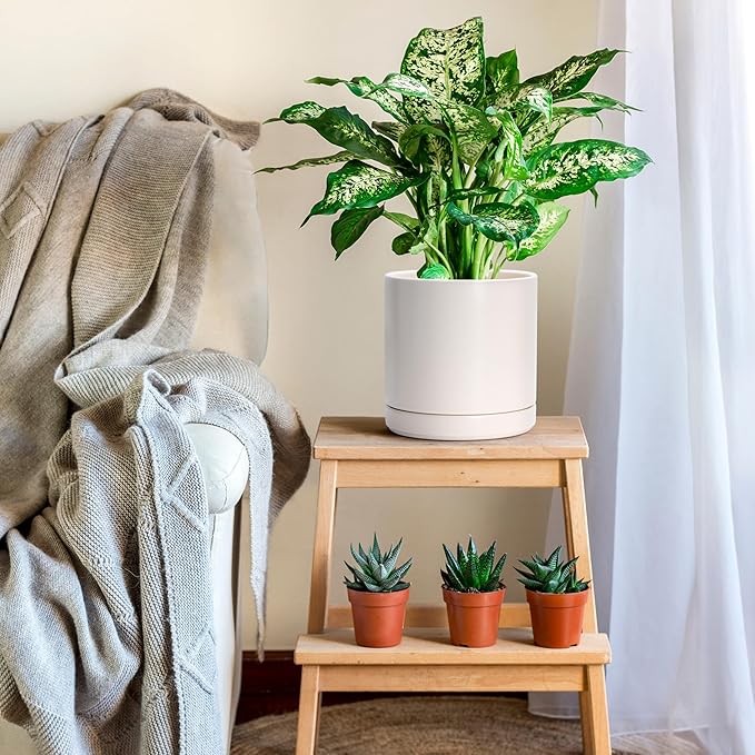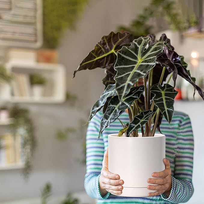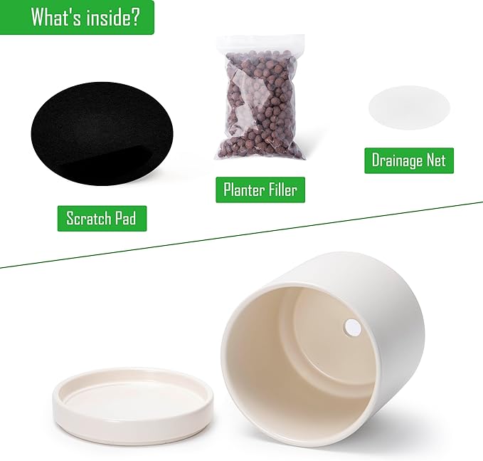 - Drainage holes and detachable/perfectly fitting ceramic saucers included.
