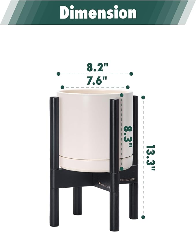 - 8 Inch Pot with Stand Set: Planter size: 8.2"Diameter x 8.3"H; pot with stand total height: 15 inch.