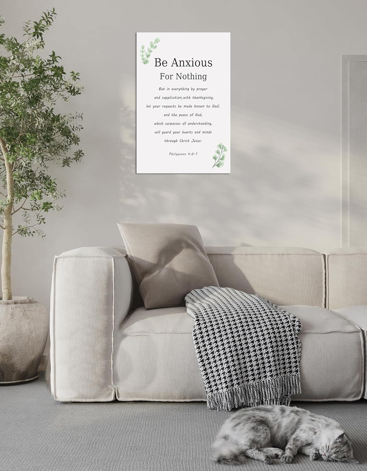 Inspirational Canvas Wall Art Philippians 4:6-7 Motivational Be Anxious for Nothing Quote Canvas Print Positive Christian Quotes Canvas Painting Office Home Wall Decor Framed[12''W X 18''H]