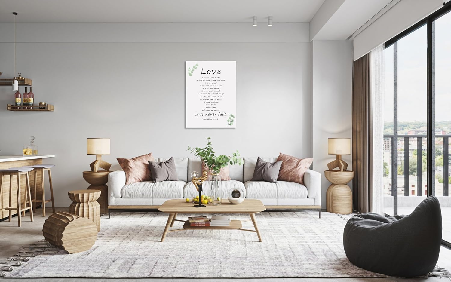 Love is Patient Love is Kind Motivational Wall Art Christian Prints Poster Inspirational Canvas 1 Corinthians 13:4-8 Paintings Office Living Room Wall Decorations Pictures Artwork[30''W X 40''H]