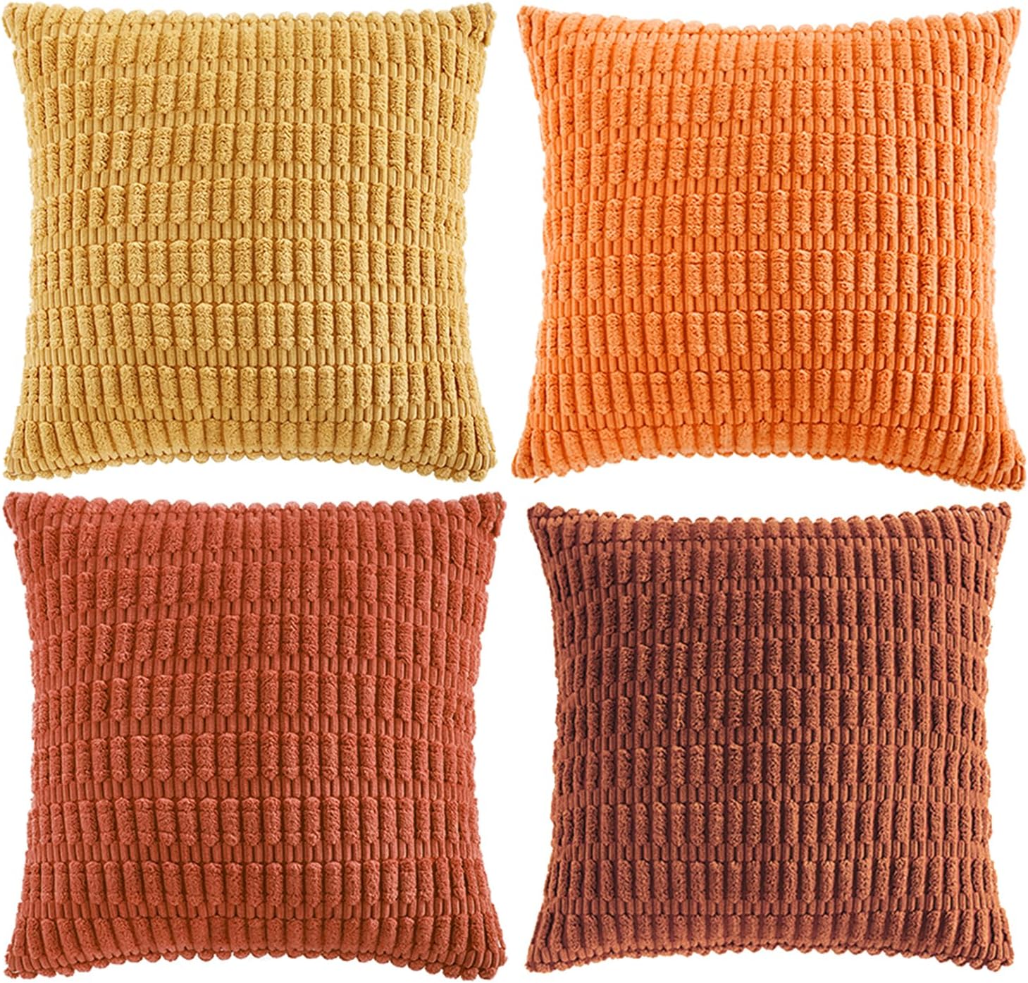Fancy Homi Set of 4 Burnt Orange Fall Boho Decorative Throw Pillow Covers 24x24 Inch for Couch Bed Sofa, Aesthetic Modern Bohemian Room Decor, Soft Fuzzy Fluffy Cozy Corduroy Cushion Case 60x60cm
