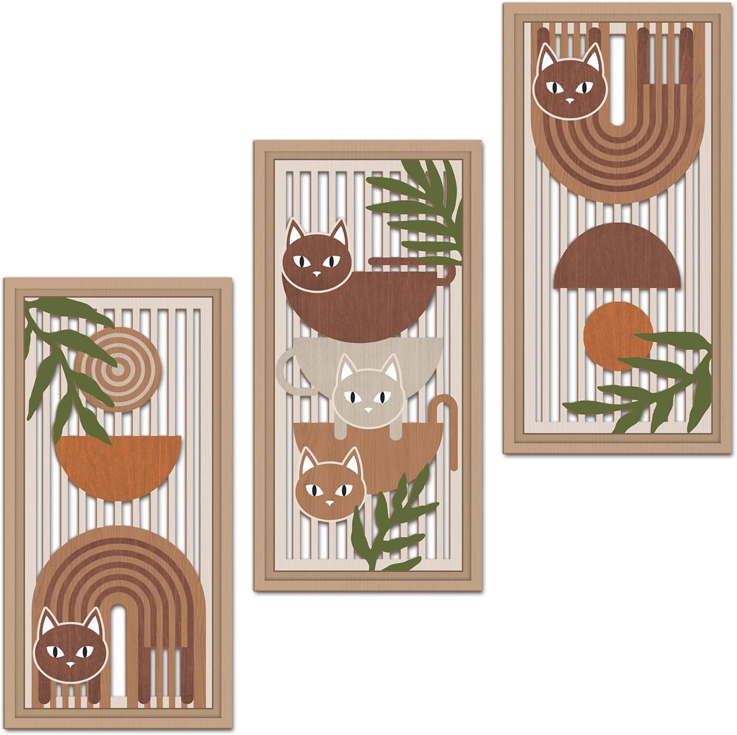IARTTOP 3 Pcs Boho Cat Wood Wall Decor Mid Century Abstract Artwork Modern Minimalist Wooden Wall Art Bohemian Geometric Hanging Decor for Farmhouse Living Room Bedroom 7.9 x15.8 Inch Cat Gifts