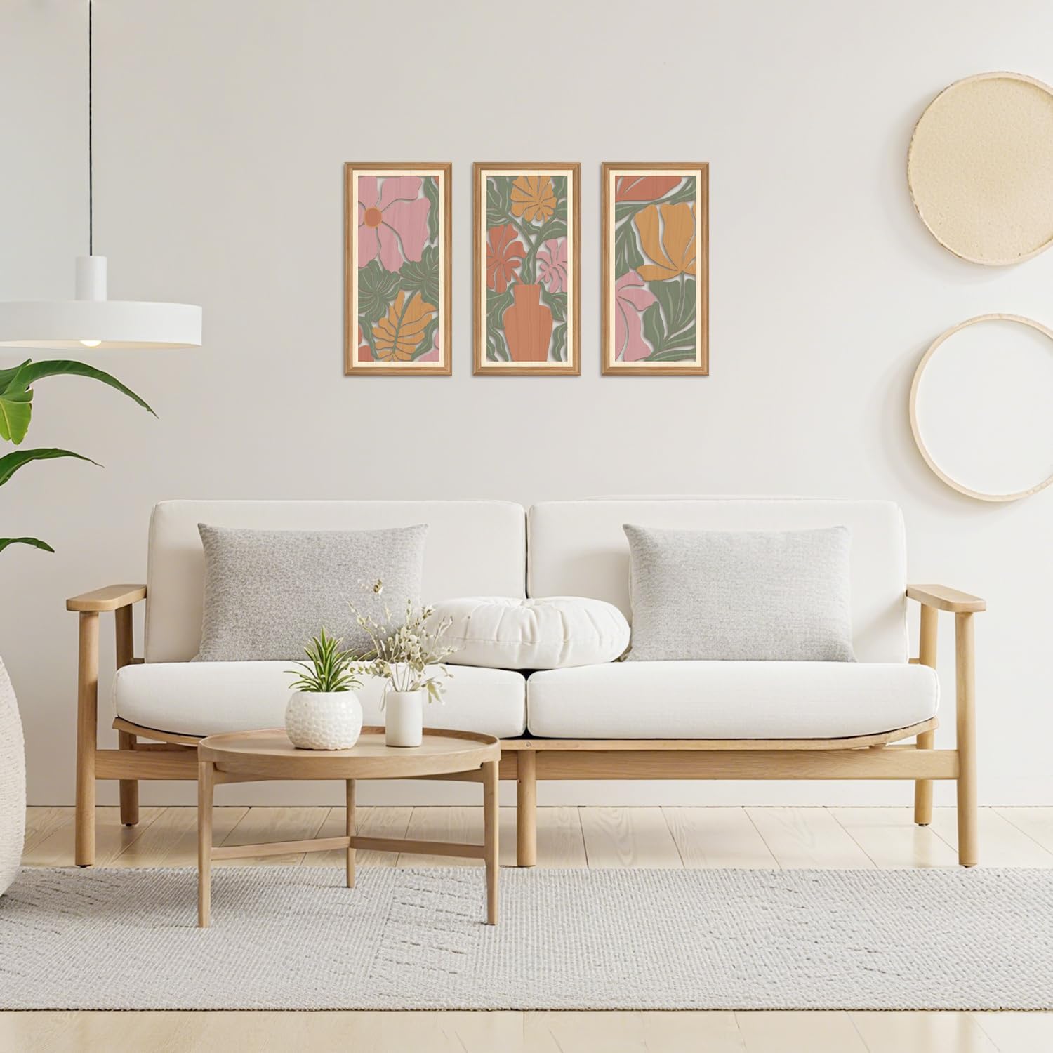 IARTTOP 3 Pcs Boho Flower Market Wall Decor Floral Botanical Modern Wood Wall Art Bohemian Floral Hanging Decor Abstract Minimalist Wooden Art for Living Room Bedroom Office 7.9 x15.8 Inch