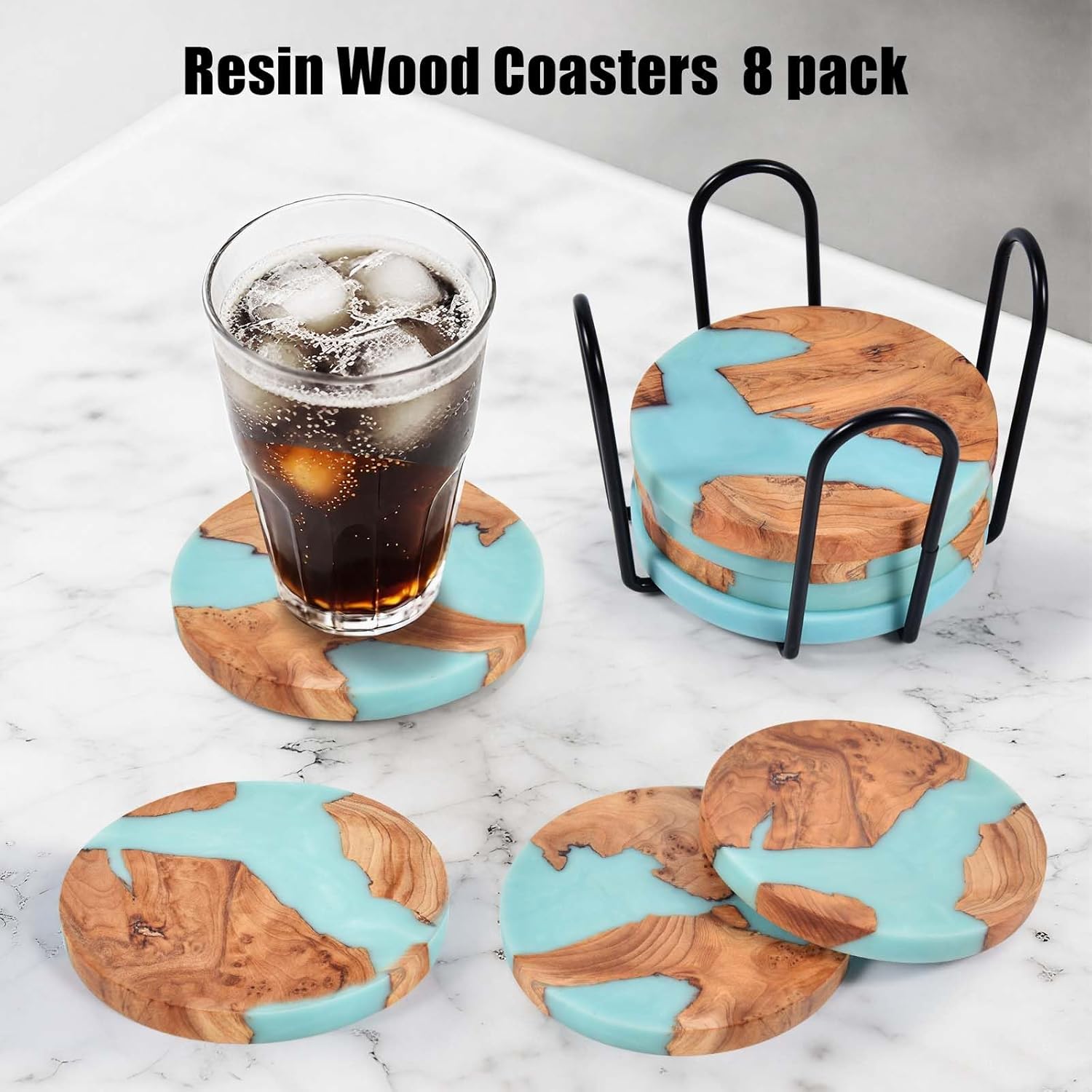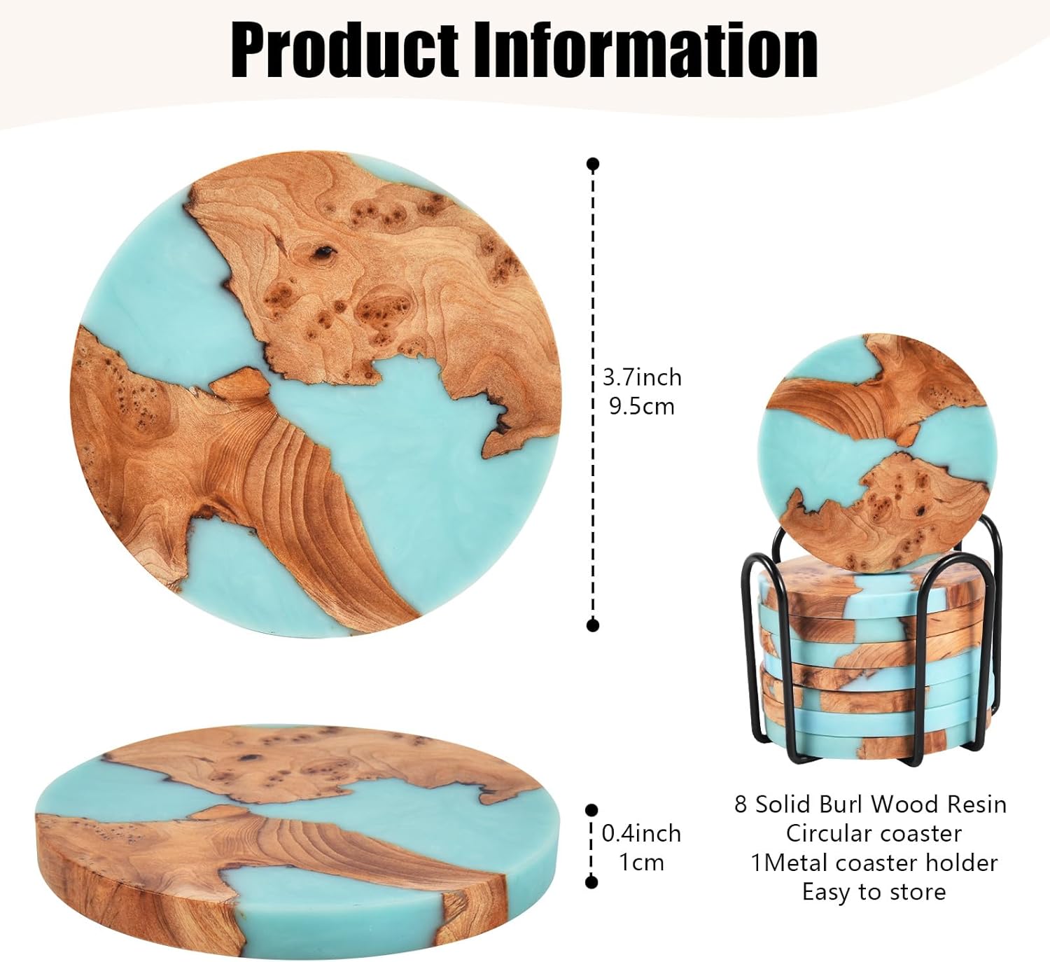 - 【Best Gift】The Best Gift for Family and Friends, Surprise them With This Unique Drink Coasters Gift Set (coasters set of 8), 8 PCS solid wood resin round coasters