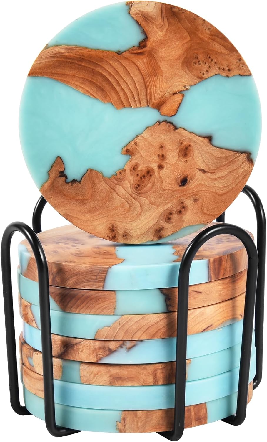 - 【Easy to Clean and Stain-resistant】 Most wood coasters are not properly coated or sealed. This resin coaster is made with an all natural, pure vegetable oil wood sealer that is extremely water resistant. The oils keep water from passing through the coasters and staining them, while making them easy to clean
