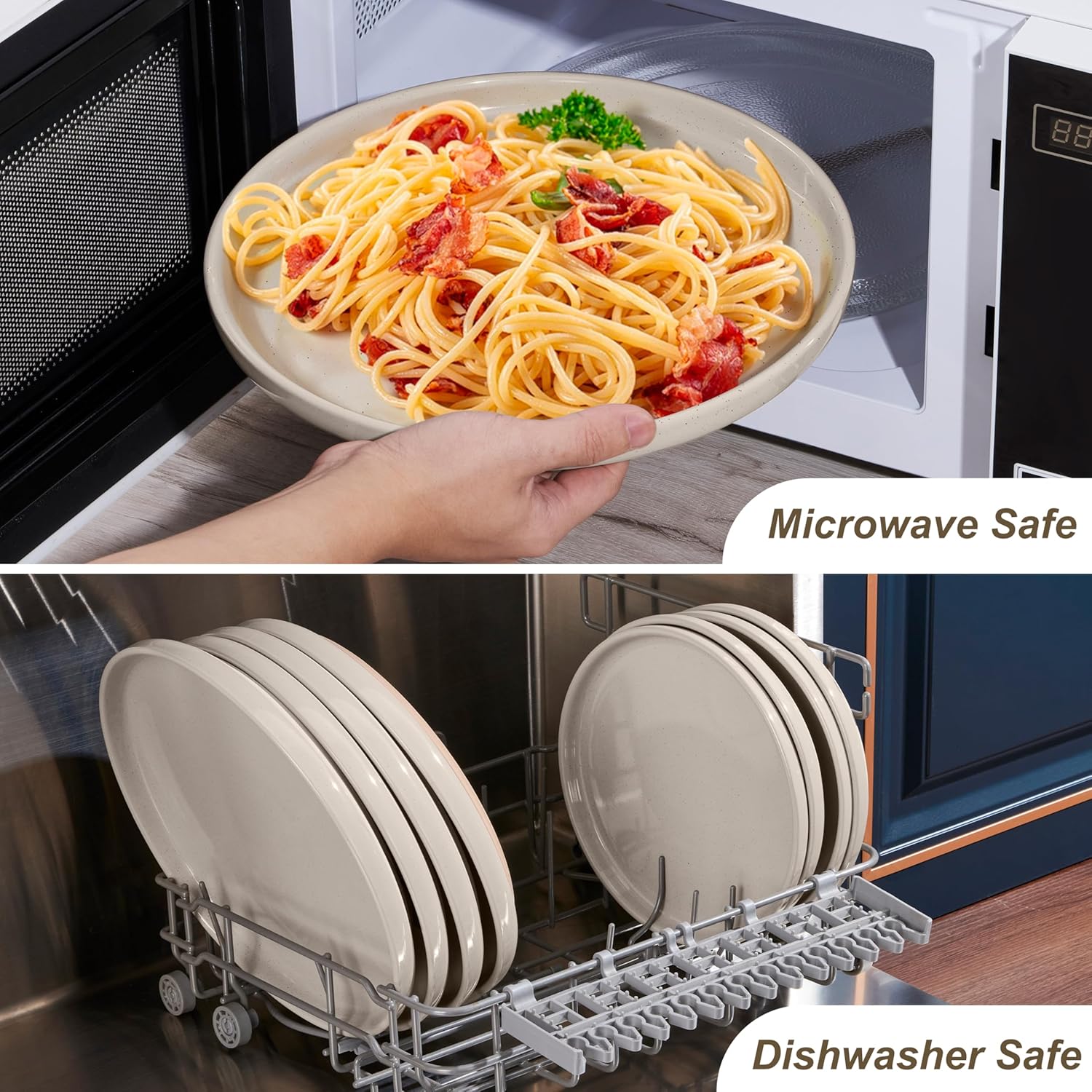 - Healthy Stoneware: made of premium lead-free stoneware, no harmful substance leaching into your food, fried at 2400℉ high temperature for 13 hours, making the plates sturdy enough to resist chipping, preventing scratches from your knives and forks
