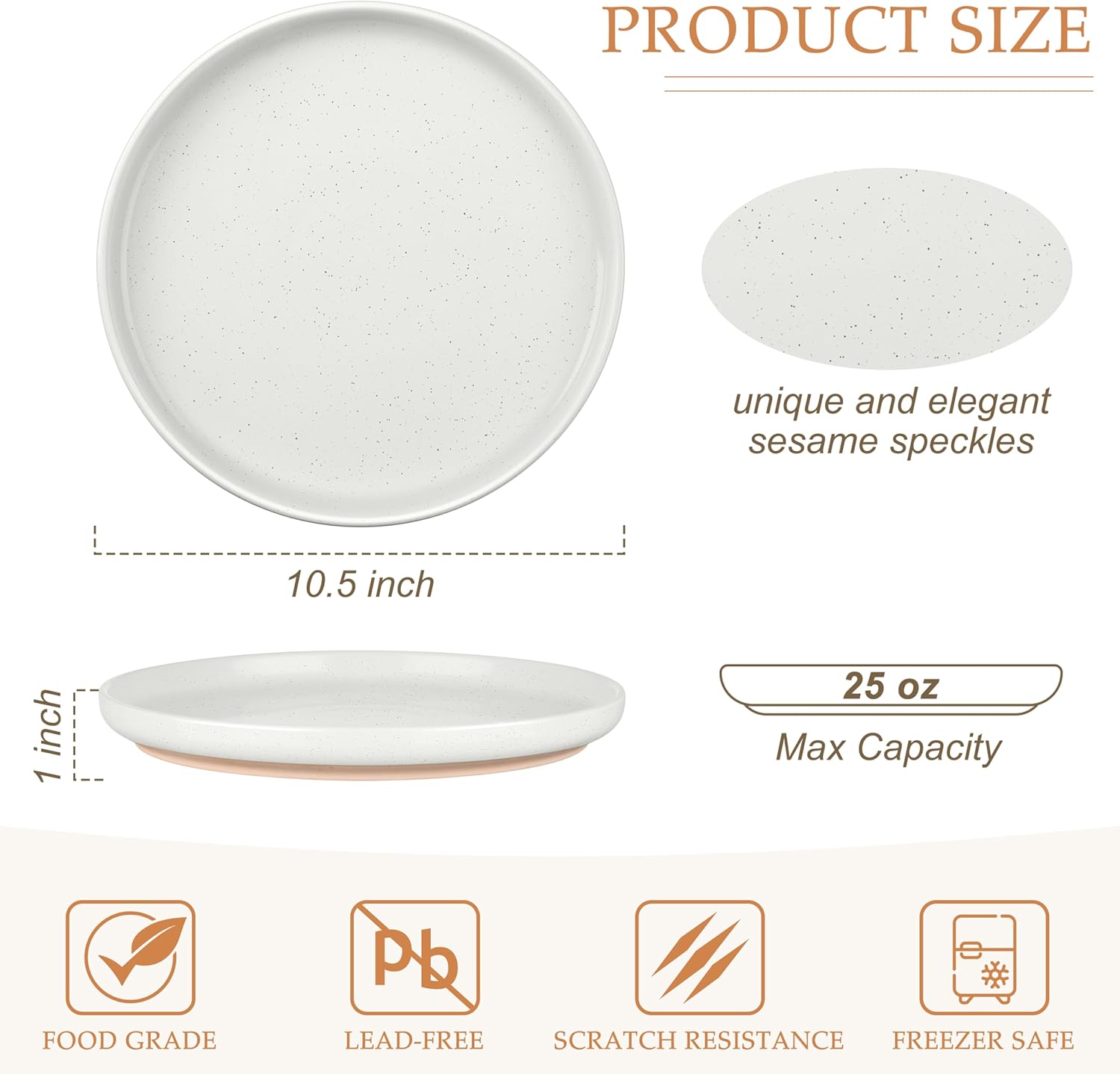 - Generous Capacity for Versatile Serving: 10.5inch perfect for serving steaks, pasta, pizza, seafood, main dishes, or fruits, 1 inch high with rim design, to prevent food with sauce or gravy from spilling off, ideal for both everyday family dining and festive party gatherings