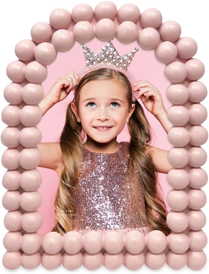 Isaac Jacobs 4x6 Matte Blush Double Bauble Arch Photo Frame with Black Fabric Easel, Tabletop, Wall-Mountable, Shelf and Desk, Decorative Art Design, Home Décor (4x6, Matte Blush)