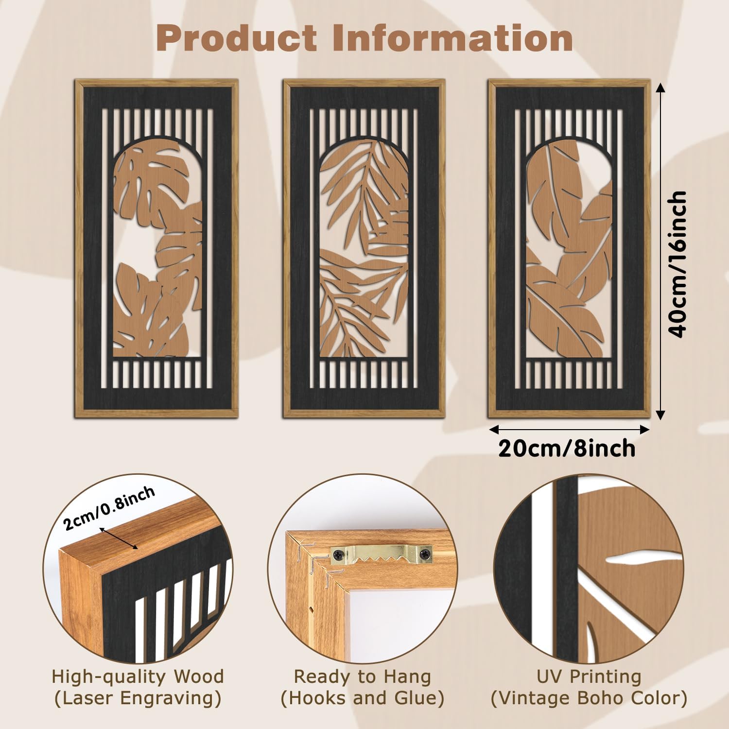 - 【Size for Easy Displaying】This modern boho wooden art pendant measures 8X16 inches (approximately 20X40 cm),and each hollowed-out wooden board is equipped with a pre-installed pendant on the back.You just need to fix the included seamless nails to the wall,and it can be easily hung.The installation is simple and convenient,and the space will be illuminated immediately