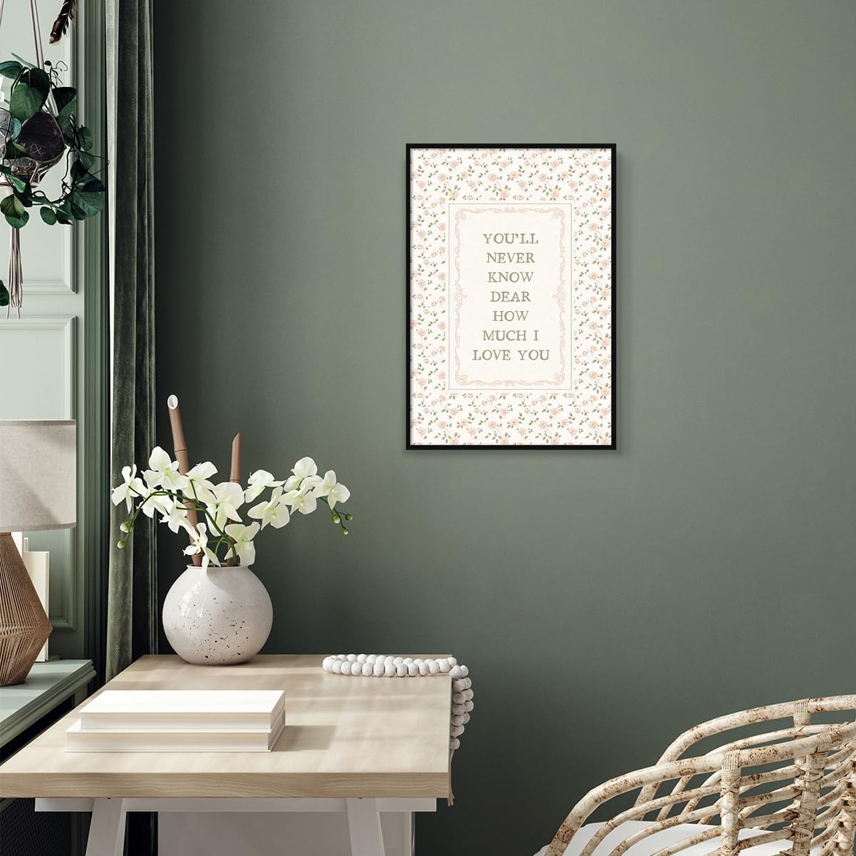 Girl Nursery Canvas Wall Art, You'll Never Know Dear How Much I Love You Quote Poster, Farmhouse Pink Flowers Print for Girls Bedroom, Green Plant Floral Picture for Wall 16x24in Unframed