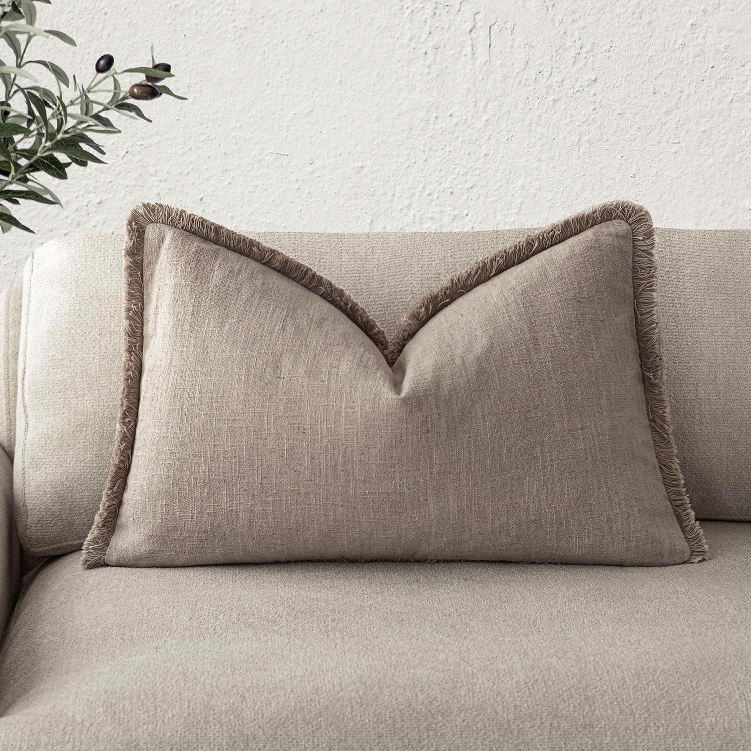 Foindtower Decorative Linen Fringe Lumbar Throw Pillow Covers Cozy Boho Farmhouse Cushion Cover with Tassel Soft Accent Pillowcase for Sofa Bed Living Room Home Decor, 12×20 Inch,1PC,Brown Tan