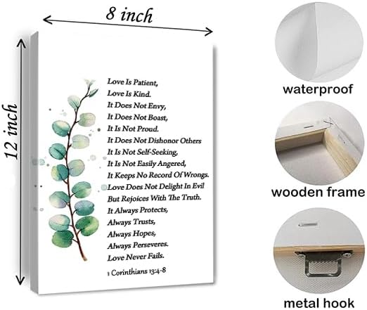 Love Is Patient Love Is Kind Wall Art 1 Corinthians 13 4-8 Canvas Print Positive Bible Verse Poster Scripture Painting Ready to Hang Home Office,Living Room,or Personal Space Framed 8 * 12 Inch