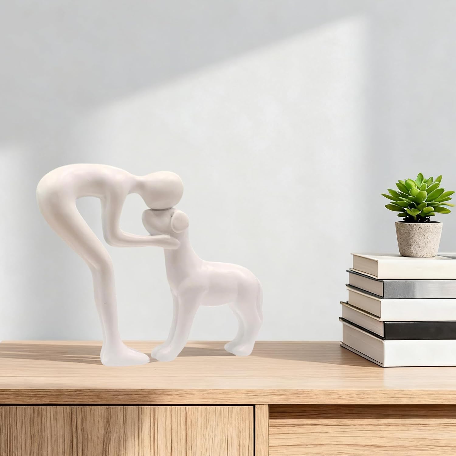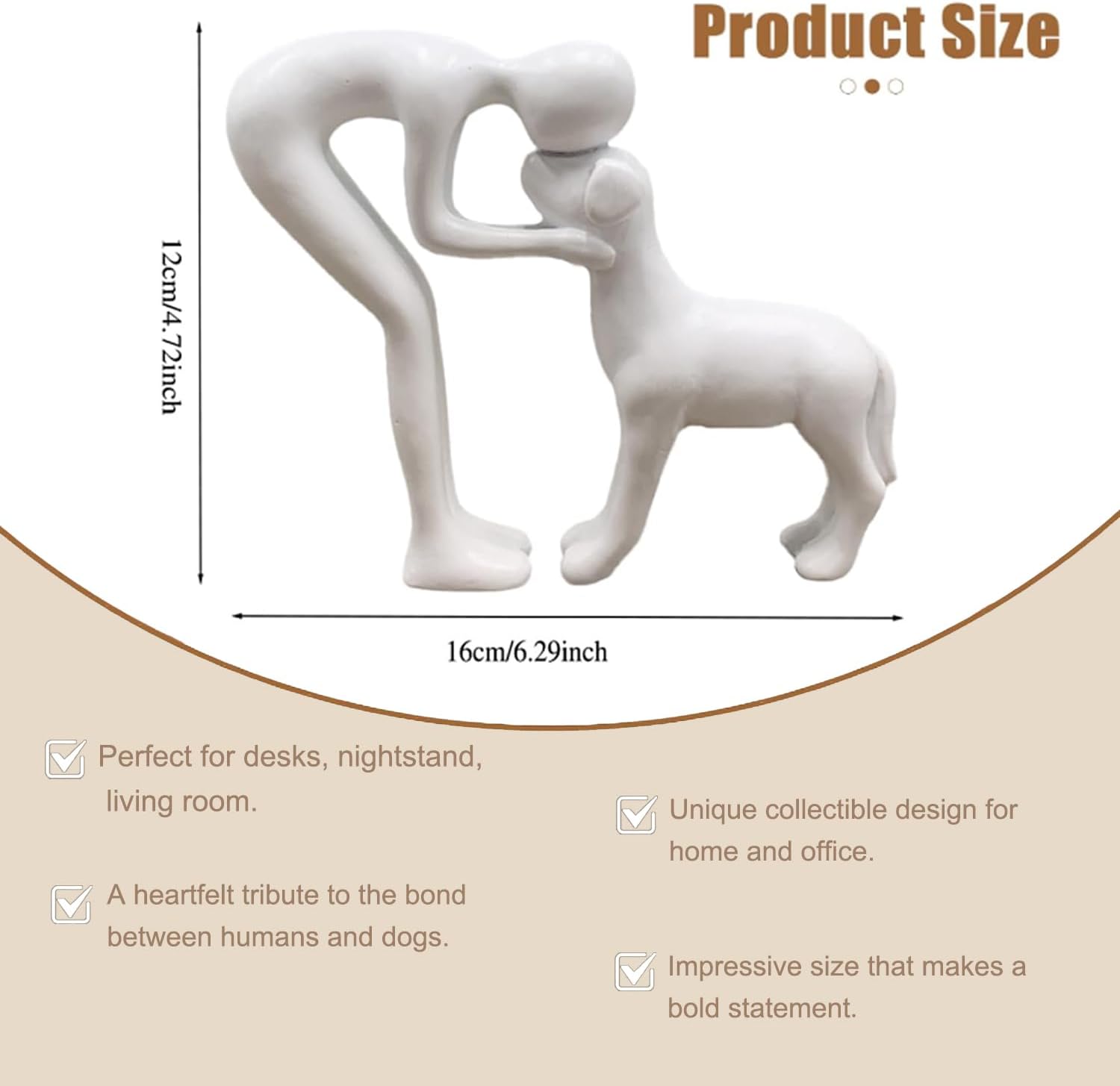 - CREATIVE DESIGN: Dogs are not only loyal companions but cherished family members, this dog sculpture is a beautiful, sentimental piece that captures the deep bond between people and their pets. It captures a quiet, intimate moment: a figure and a dog touch foreheads in a silent exchange of devotion and understanding.