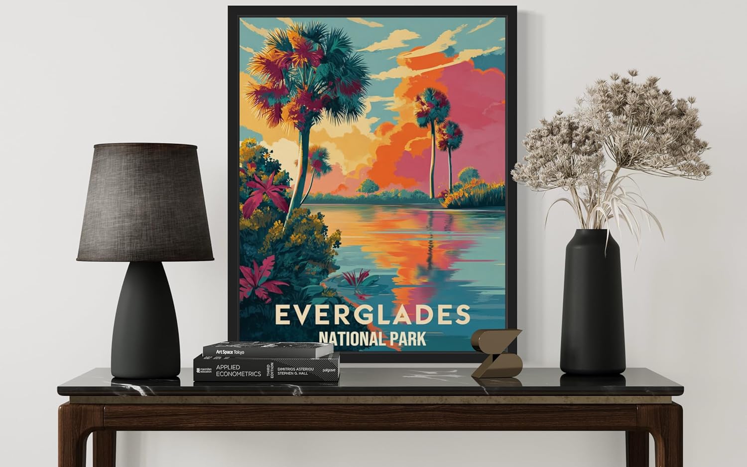 Everglades National Park Art Print Poster, Vintage Retro Pop Art Travel Wall Art Bedroom Bathroom Living Room Decor 185 (Everglades, 16 x 20 inches, Unframed)