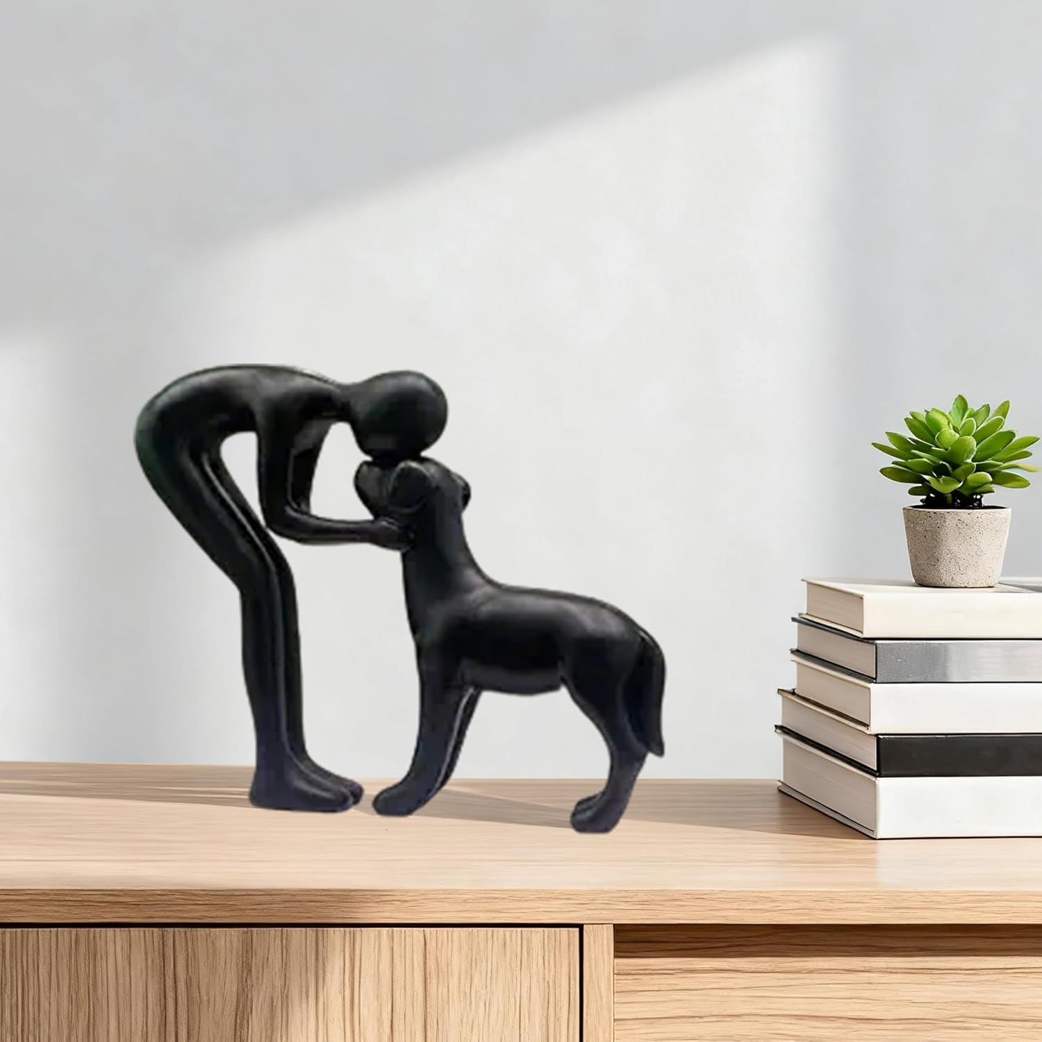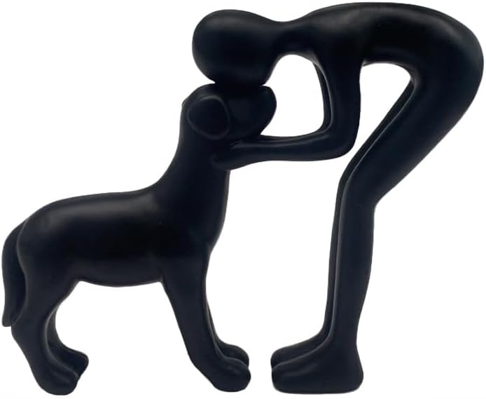 - CREATIVE DESIGN: Dogs are not only loyal companions but cherished family members, this dog sculpture is a beautiful, sentimental piece that captures the deep bond between people and their pets. It captures a quiet, intimate moment: a figure and a dog touch foreheads in a silent exchange of devotion and understanding.