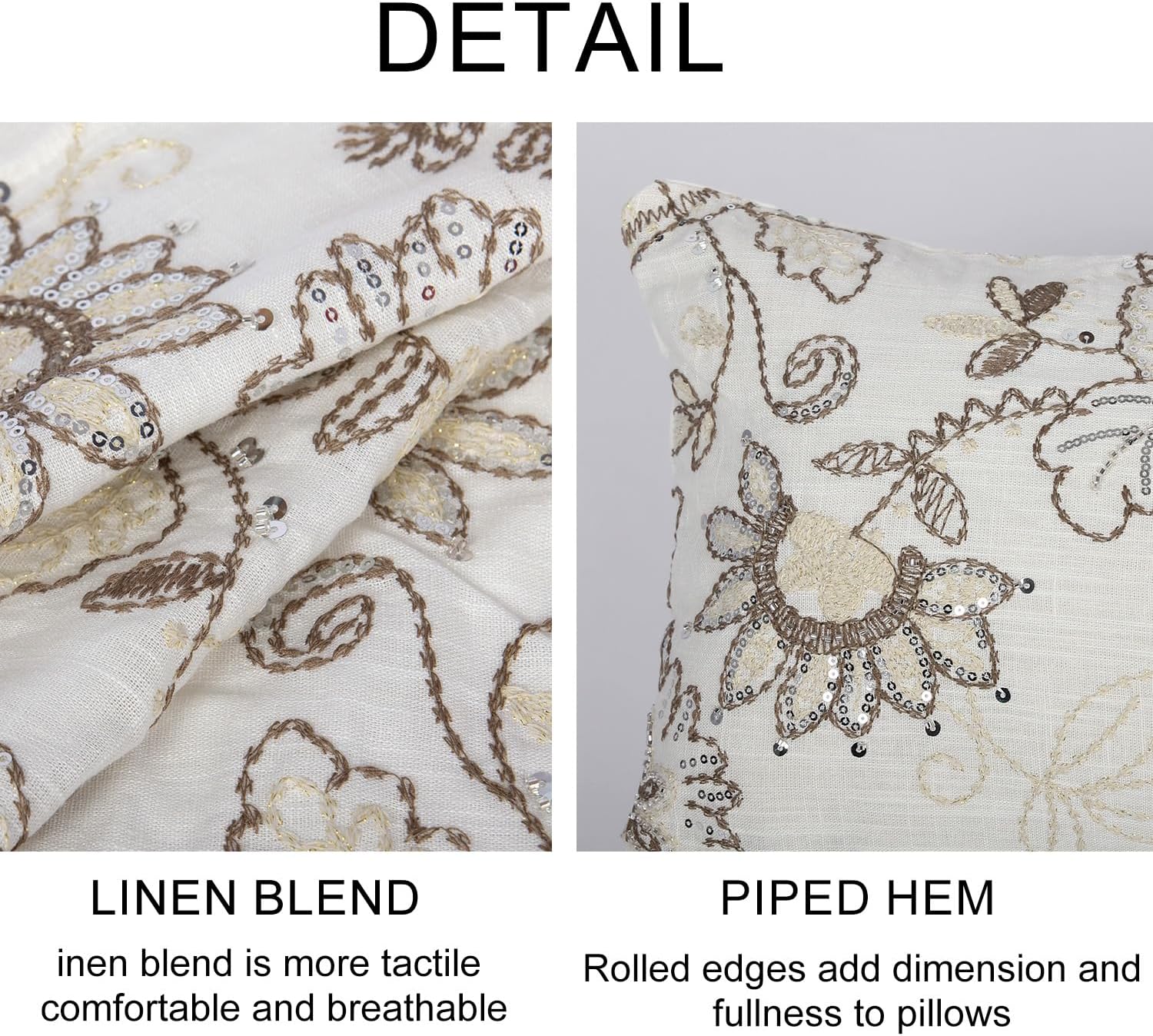 - Feature: The embroidered floral farmhouse chinoiserie flower sequin throw pillow cover allows for any type of combination with furniture of any room. The invisible zipper design helps easily on and off. Absolutely adorable decorative pillow covers.