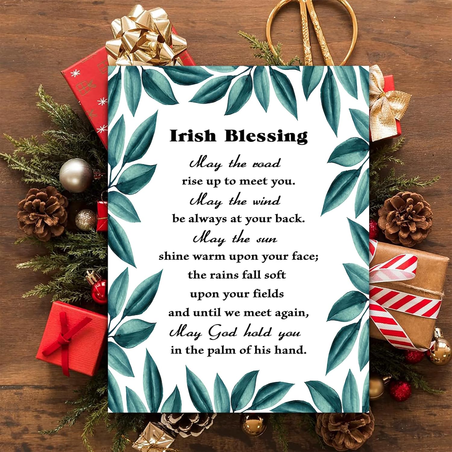 May The Road Rise Up To Meet You,Irish Blessing Canvas Wall Art Christian Green Watercolor Poster Positive Scripture Print Wedding Gift Home Living Room Bedroom Office Decor Framed 16 * 24 Inch