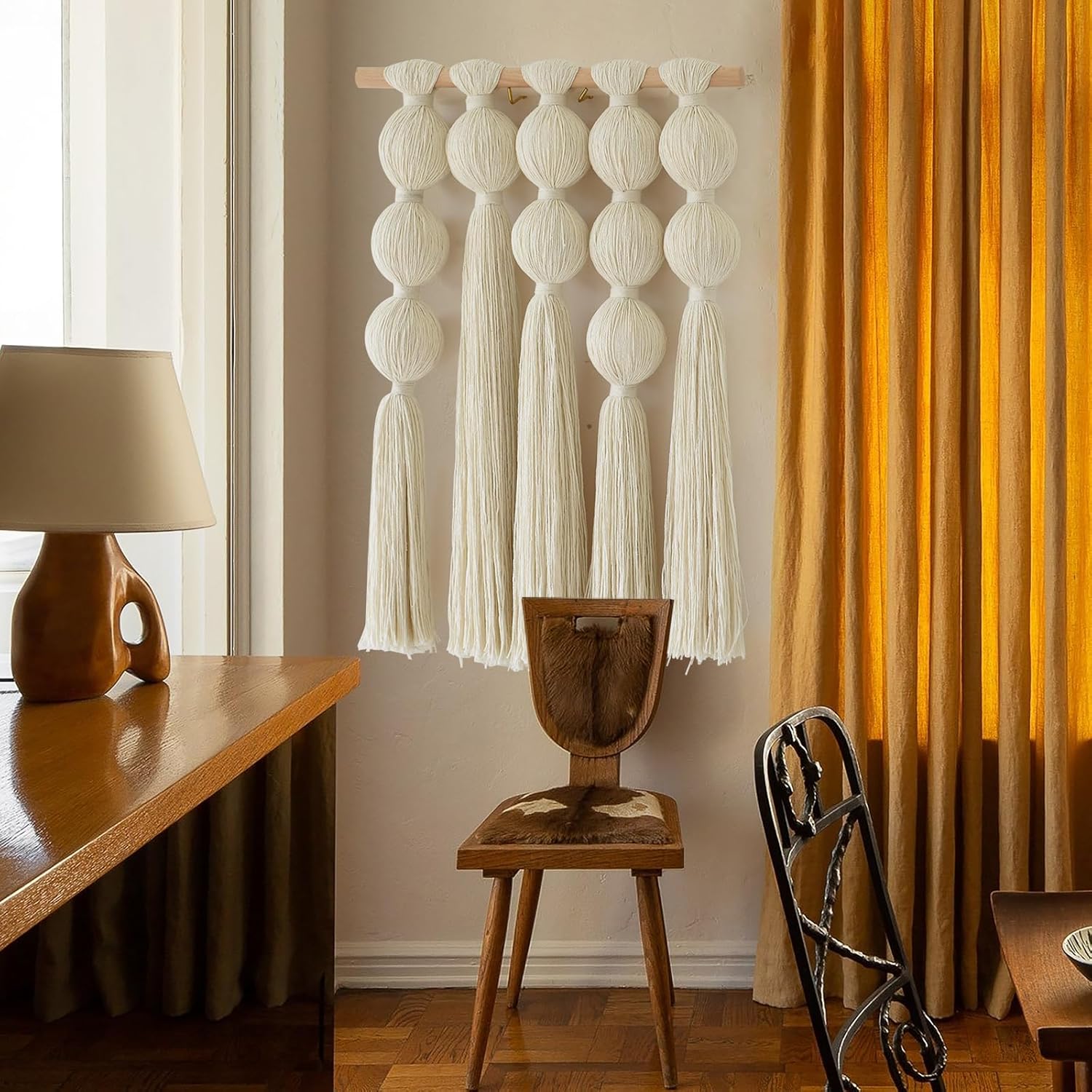 - Ready to Hang & Gift-Ready: Mounted on a solid wooden dowel for effortless display. This macrame wall hanging wall art decor makes a thoughtful gift for housewarmings, weddings, or birthdays, and adds a refined touch to bedroom, living room, or above-bed headboard decor.