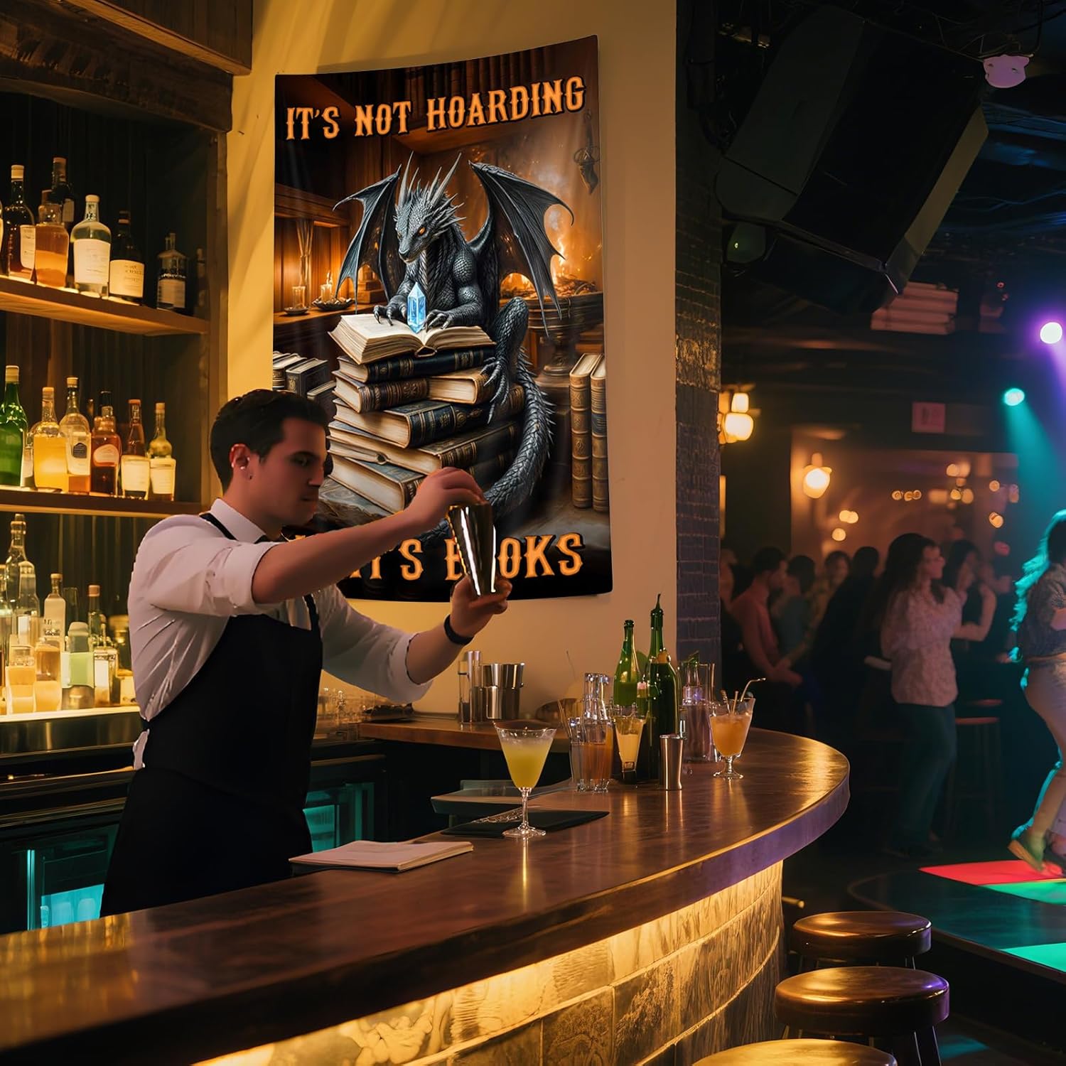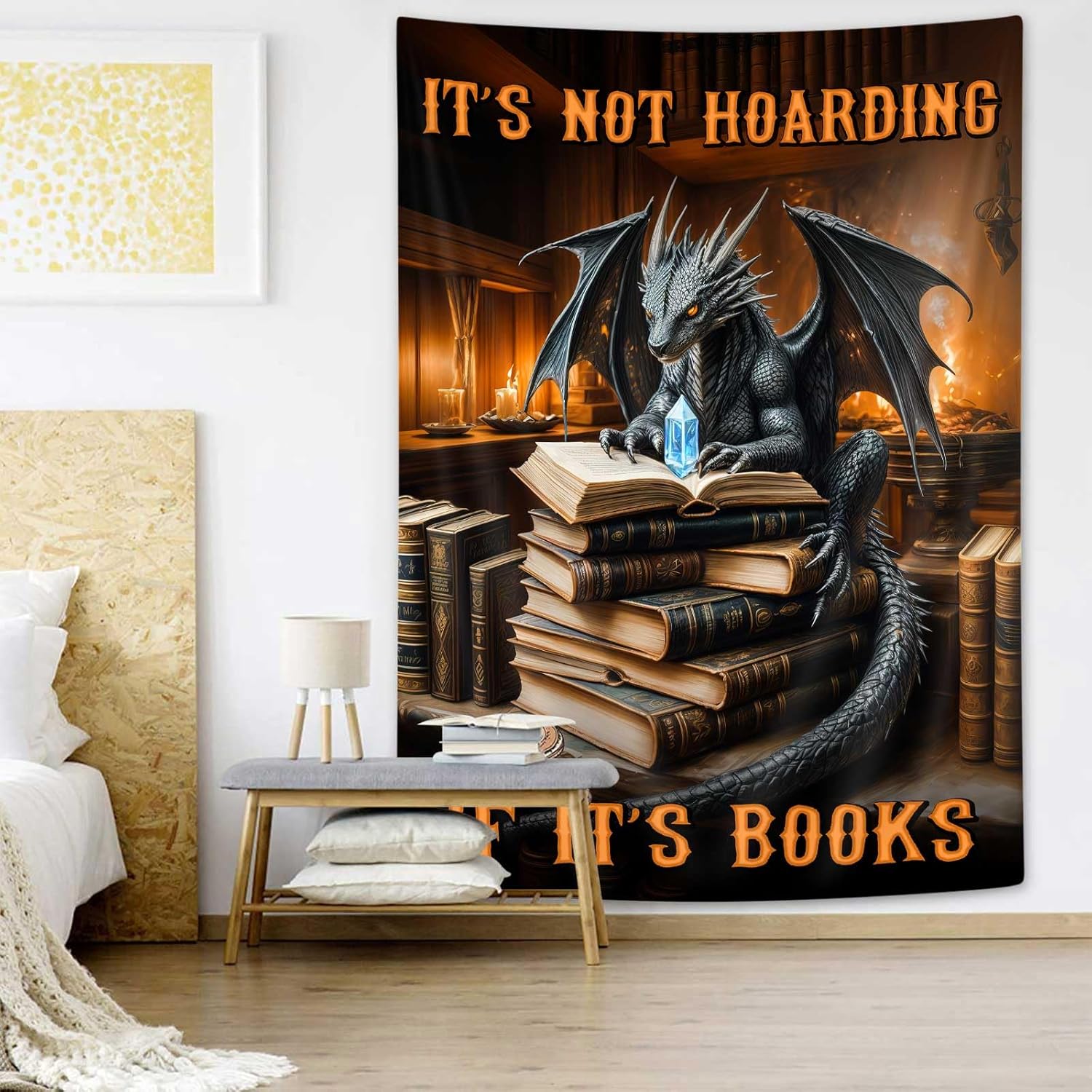 DYNH Black Book Dragon Art Tapestry,Vintage Medieval Dragon Wall Decor, It's Not Hoarding If It's Books,Wall Hanging for Book Lover Library Classroom Reading Nook Home Bedroom Living Room,70X90Inches
