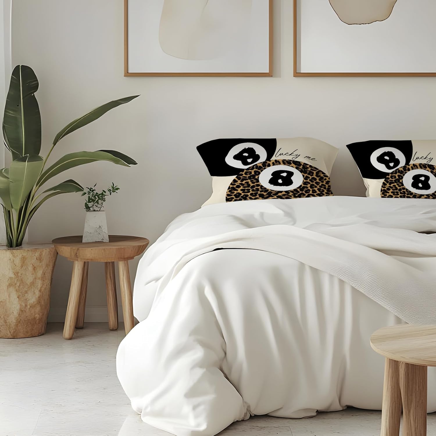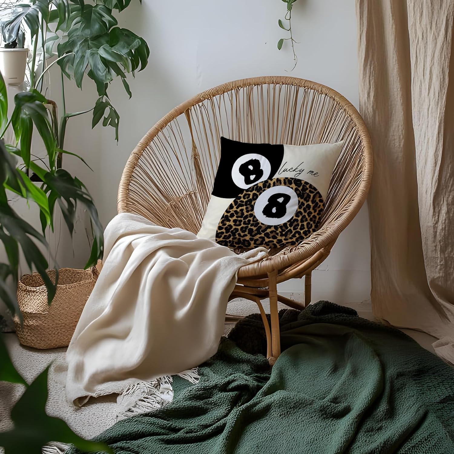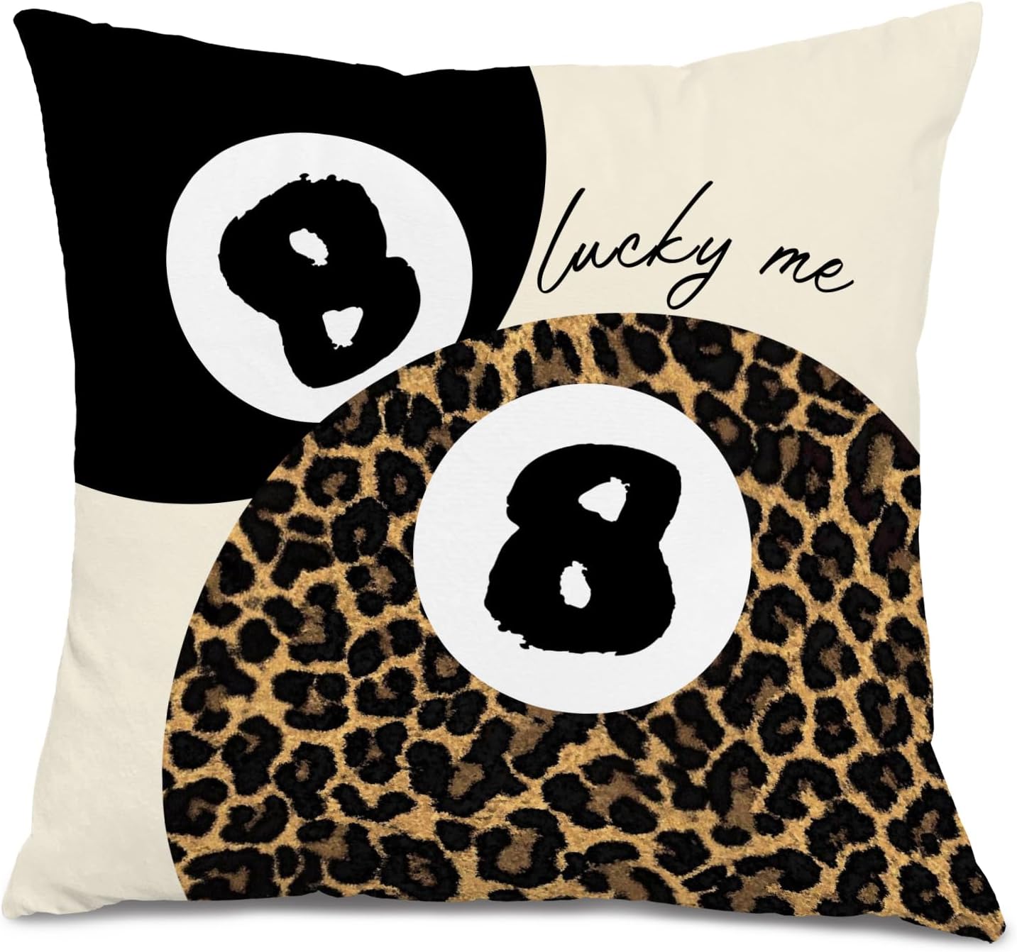 Coquette Pink Bow Leopard Print Lips Lucky 8 Ball Throw Pillow Covers 18x18, Cheetah Room Decor, Funky Y2K Leopard Print Decorative Pillow Covers for Girls Room Dorm Apartment Home