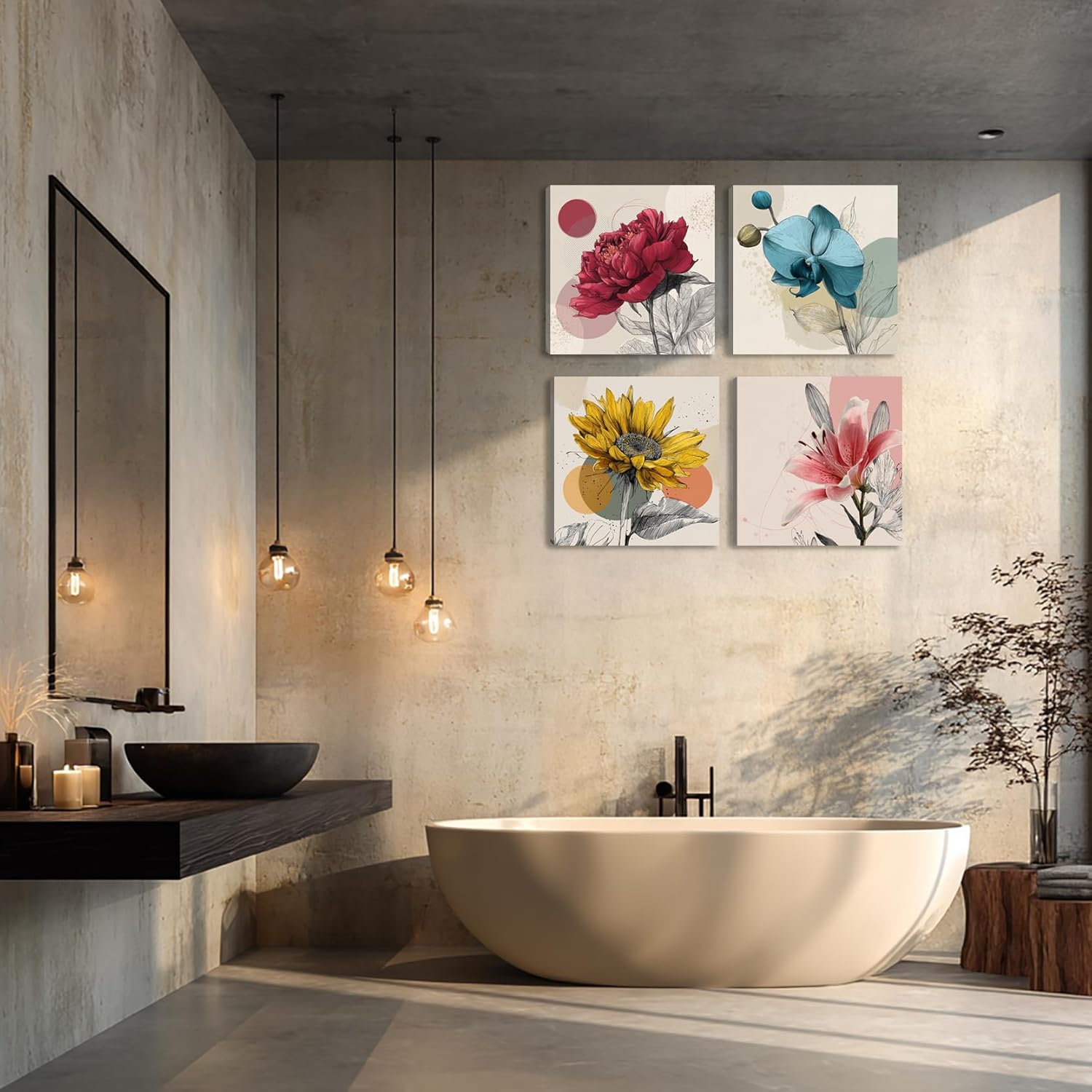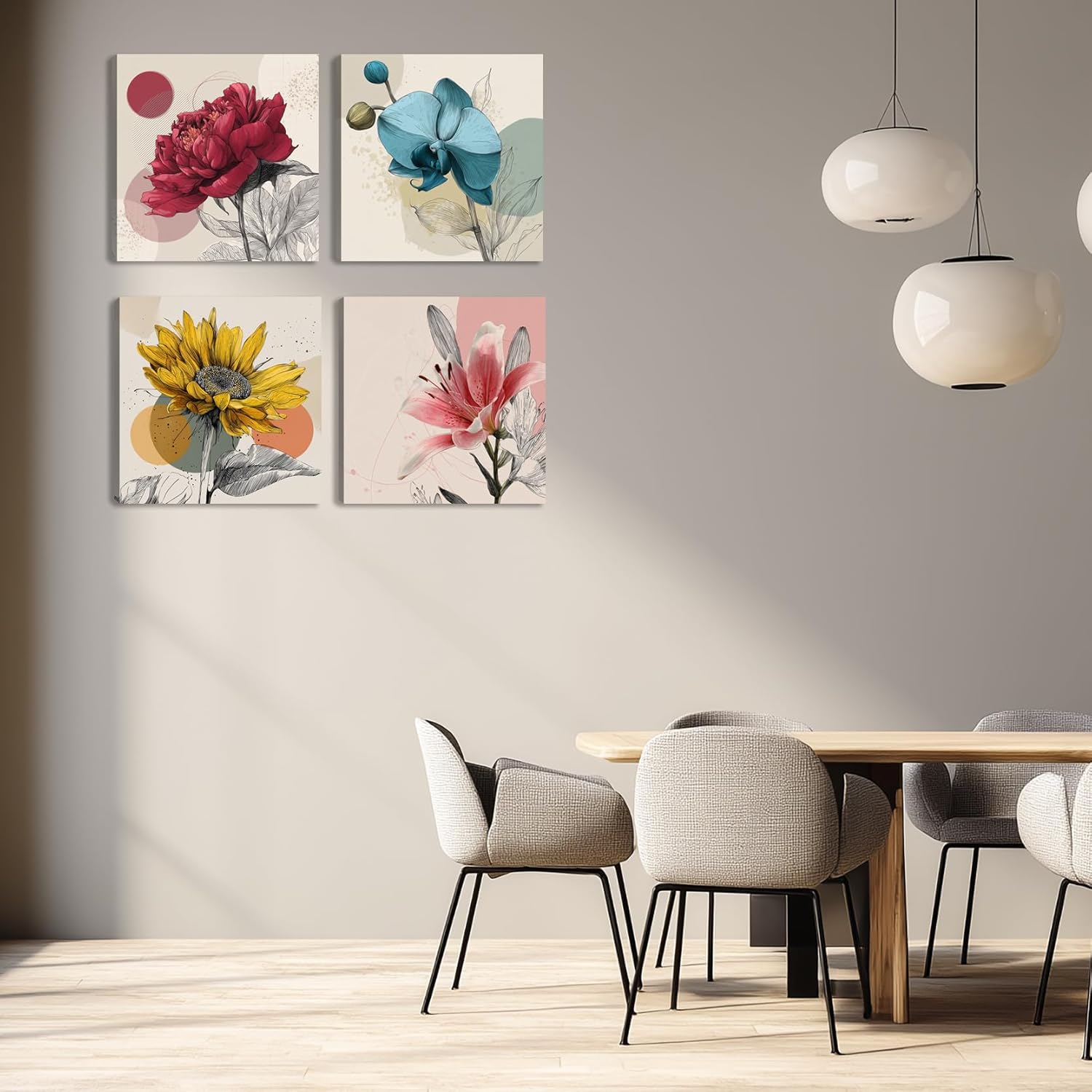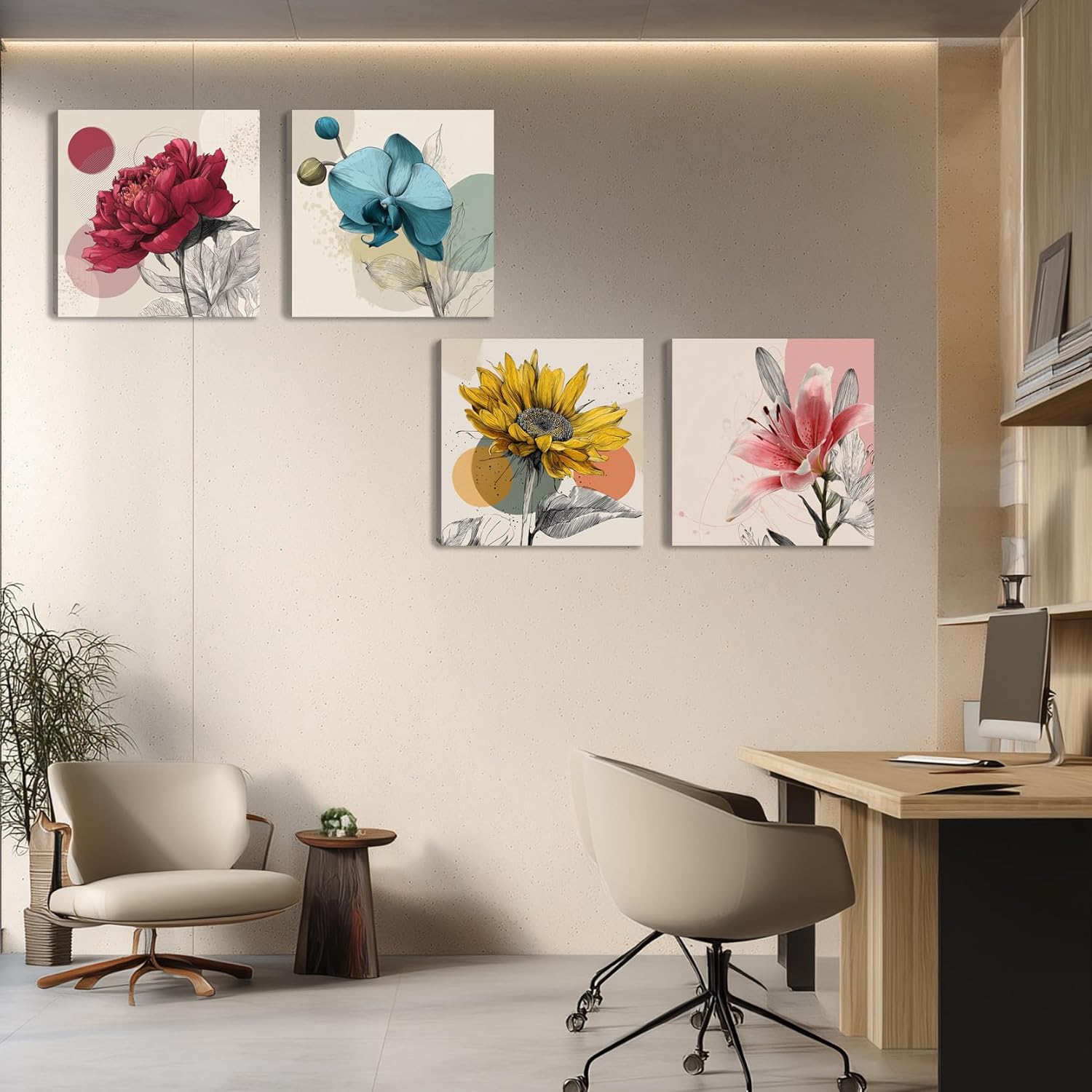 - Flower Canvas Wall Art Size : 12"x12" each panel,total 4 panels.Gallery wrapped and stretched wood frame