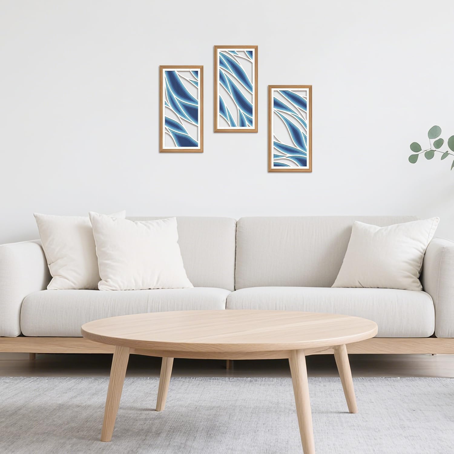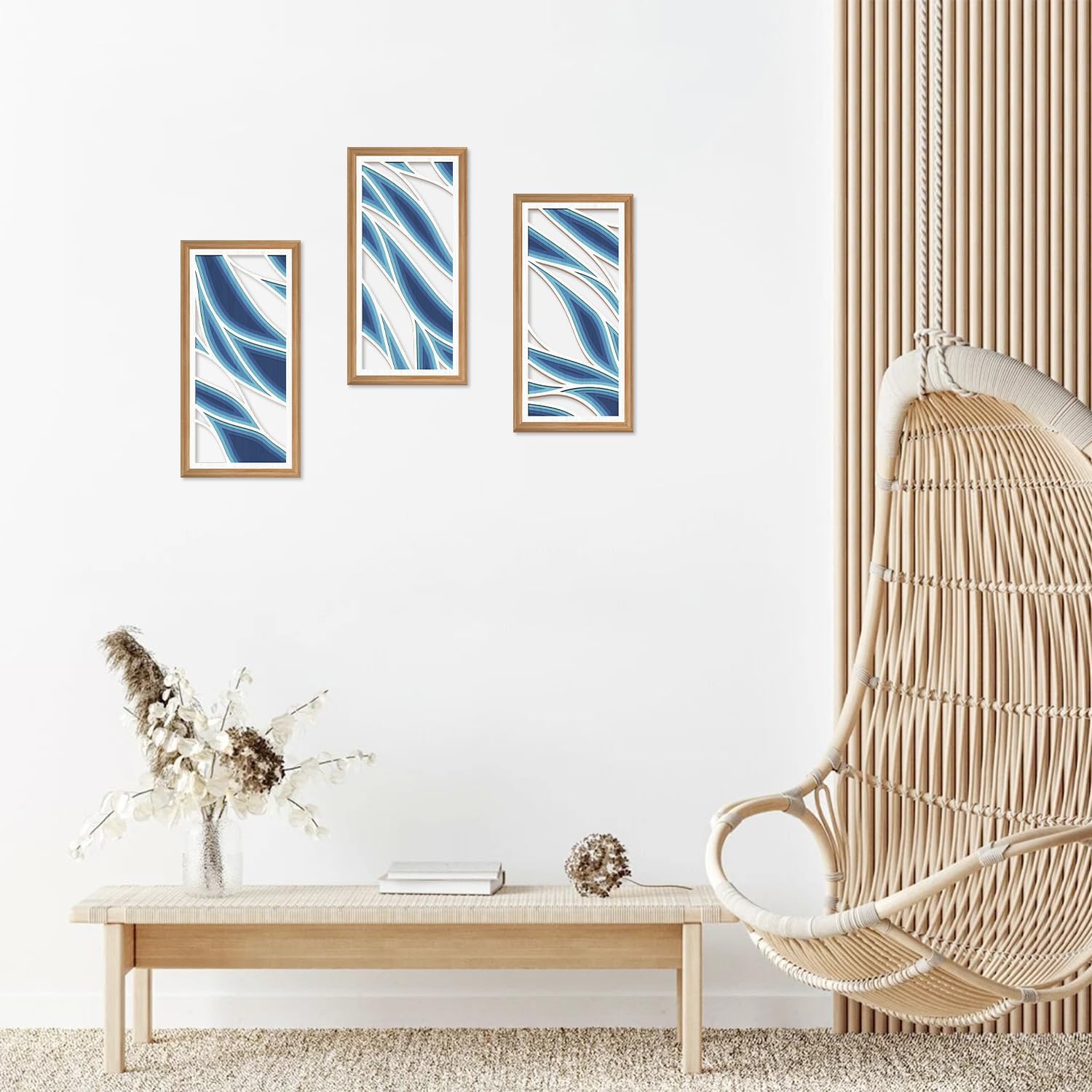 IARTTOP 3 Pcs Bohemian Abstract Wood Wall Decor Blue Mid Century Artwork Minimalist Modern Hanging Decor Boho Blue Waves Wall Art for Office Living Room Bedroom 7.9 x15.8 Inch