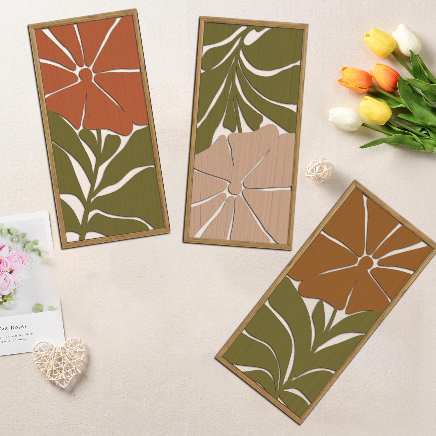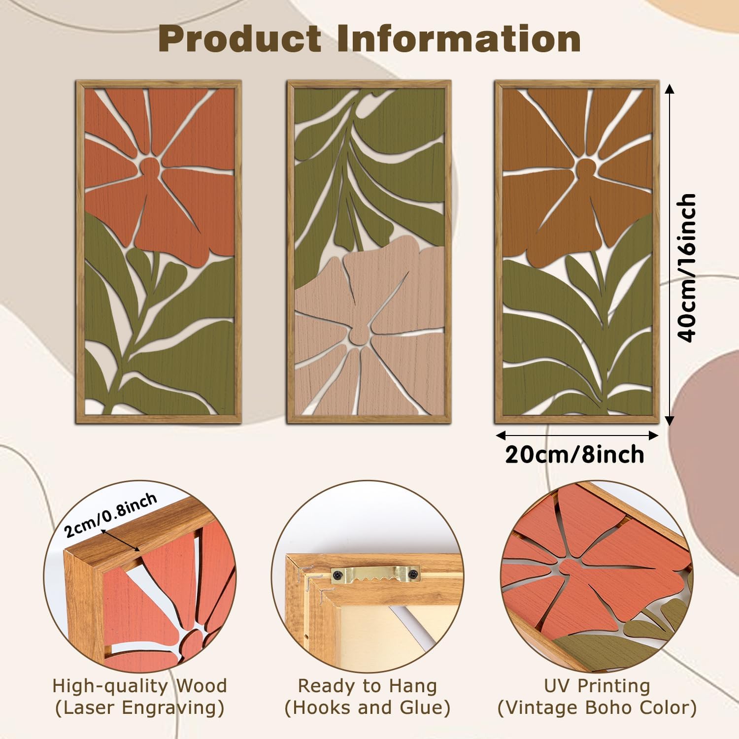 - 【Size for Easy Displaying】The size of our Botanical Wooden decor is 8X16 inches.Hangers are installed on the back of each hollowed-out wooden board. Just attach the built-in seamless nails to the wall and hang them.The installation method is simple and easy to hang