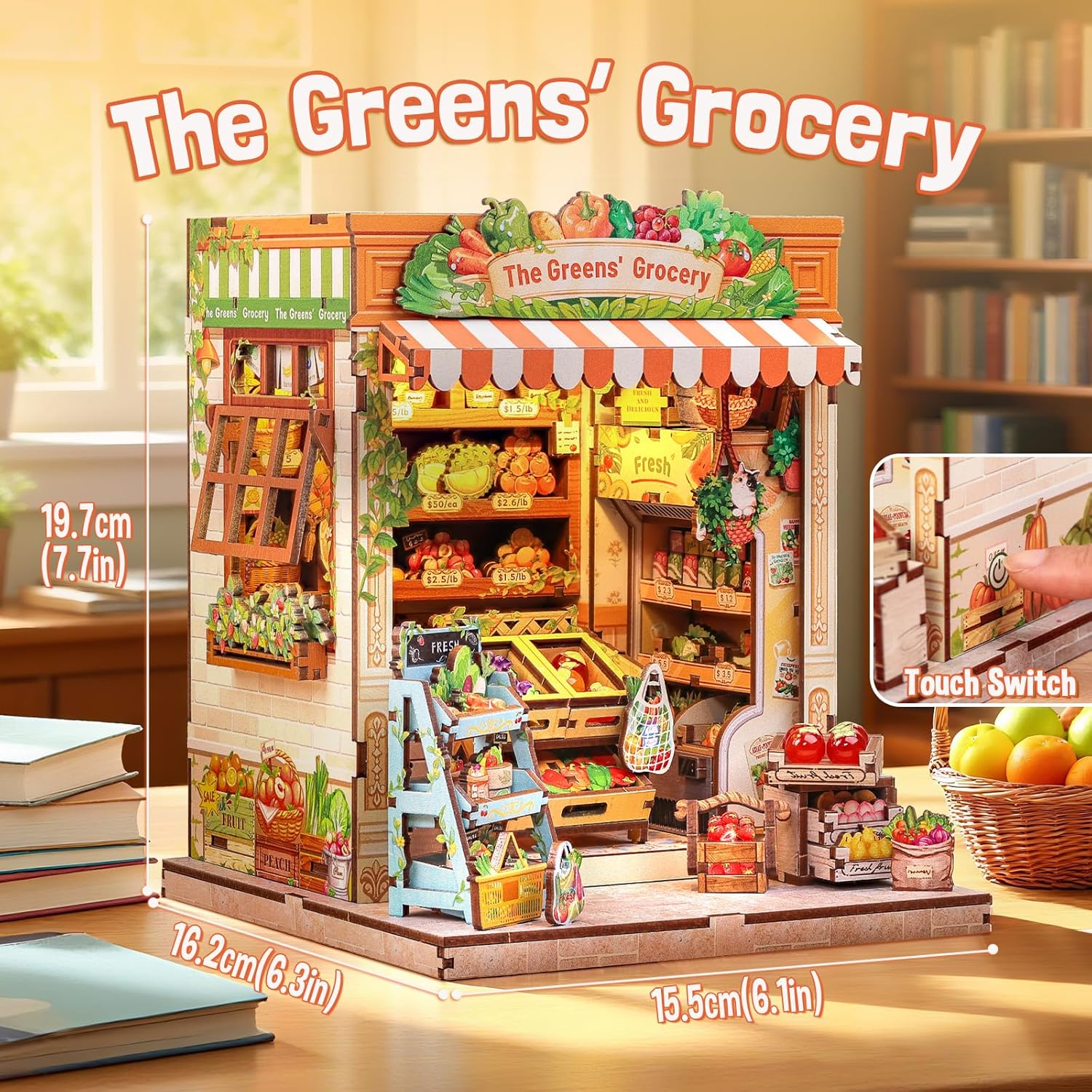 Fsolis Book Nook Kit - DIY Miniature House Kit for Adults Mini Scene House Tiny 3D Puzzles Bookshelf Diorama Decor Gifts for Women Teenagers Book Lovers (The Greens’ Grocery)