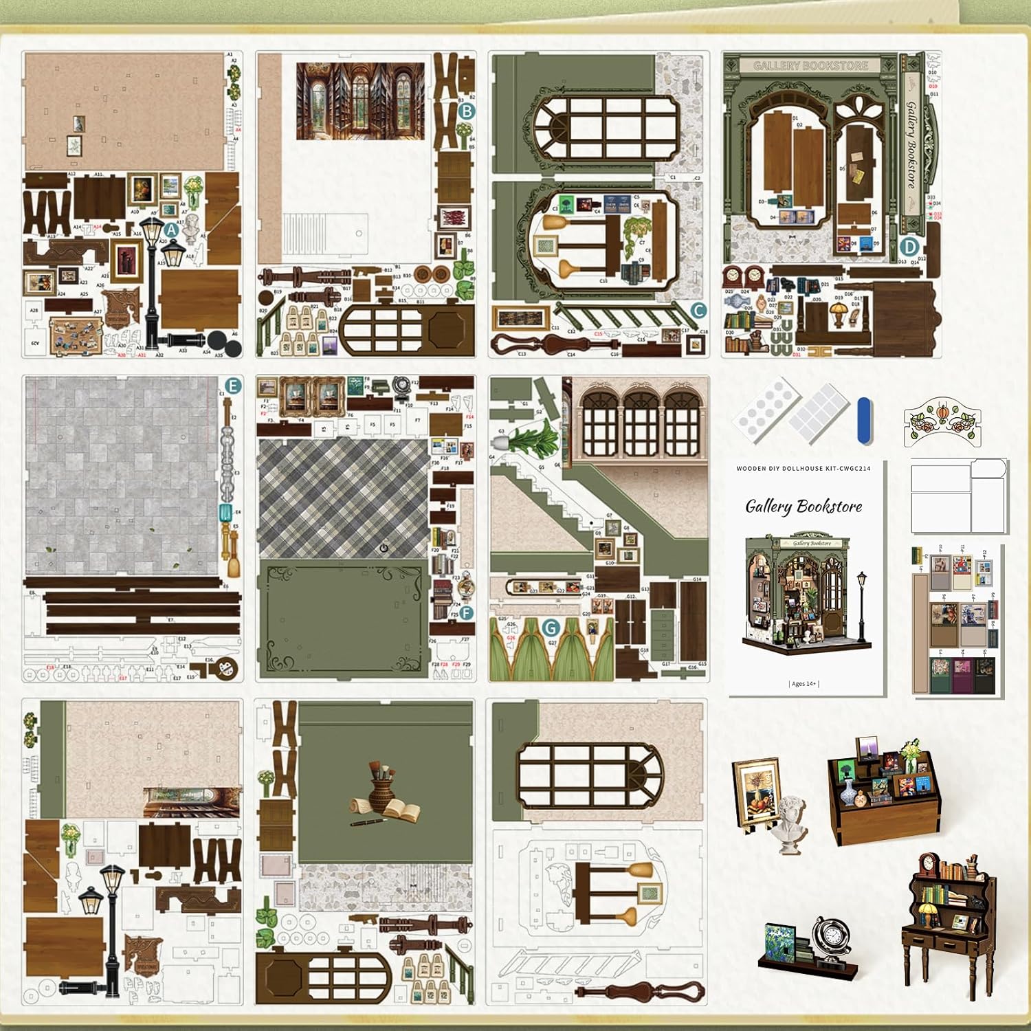 - 【Assembly Friendly for Puzzle and Craft Beginners】The DIY corner book nook includes 246 pre-cut pieces and 24 spare pieces which friendly for beginners and teenagers, with a step-by-step manual for guidance, no challenging for beginners, very suitable for who love miniature world and mini house kit to take you into immersive experience
