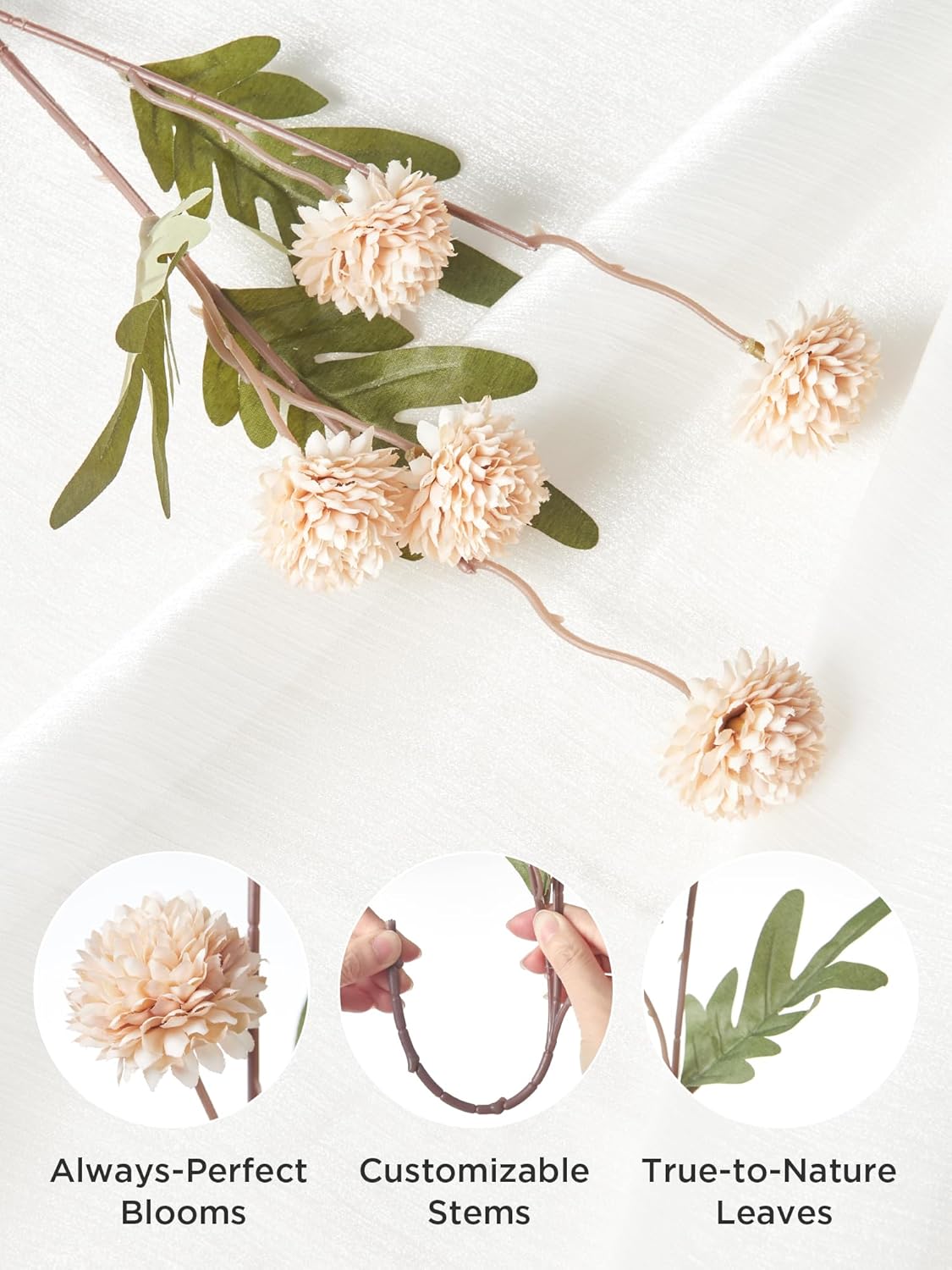 - Hassle-Free, Everlasting Beauty: Unlike real flowers, these silk artificial pompon mums never shed pollen or petals, ensuring a clean, mess-free display in any setting. With no need for watering, trimming, or maintenance, these fake flowers stay perfectly fresh year-round—simply arrange them once and enjoy timeless elegance. A practical, maintenance-free decor solution for any space.