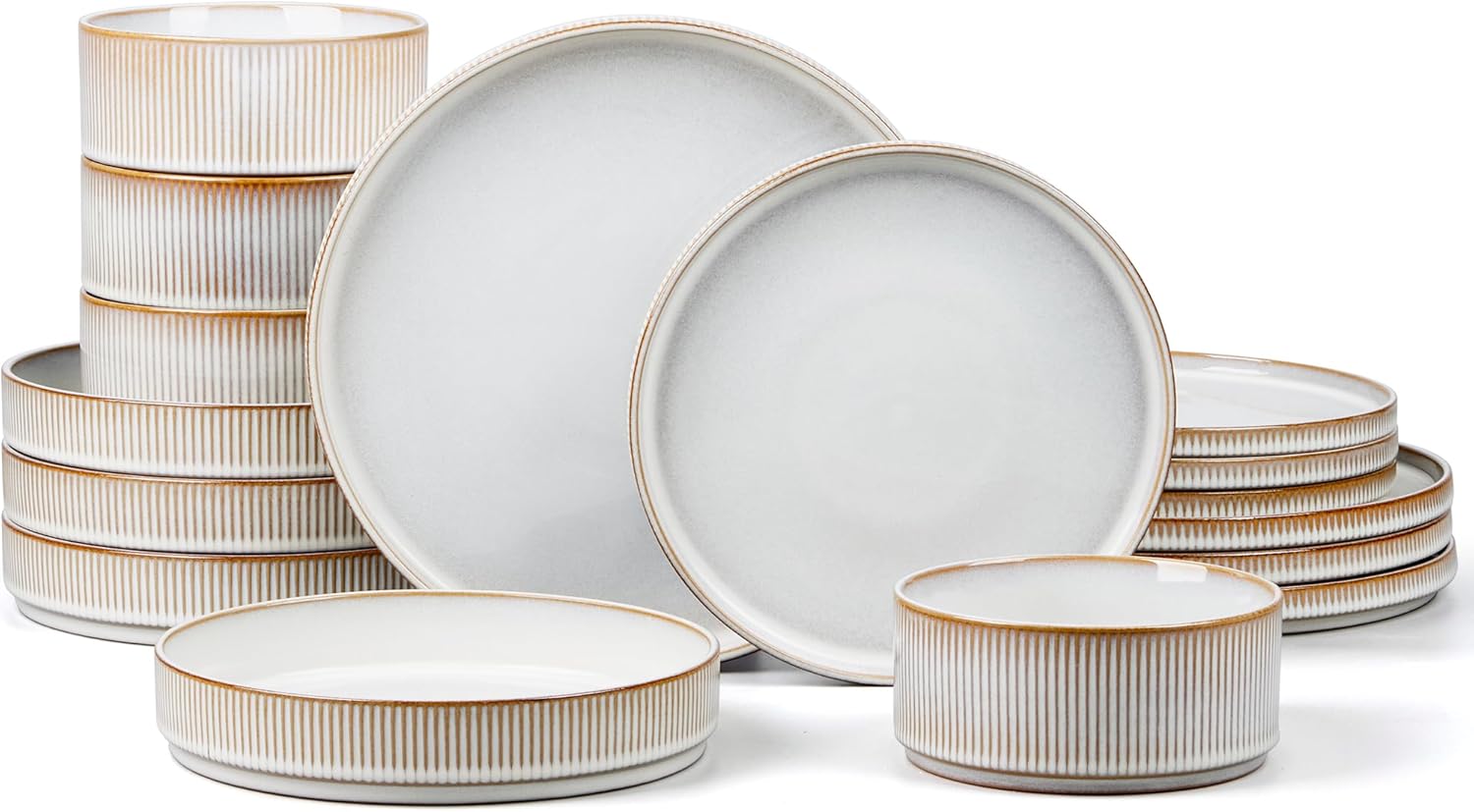 - 16-PIECE DINNERWARE SETS: Includes 10.2 in dinner plates, 8.3 in dessert plates, 8.1 in (30oz) pasta bowls and 5.6 in (25.5oz) cereal bowls, Elegant dish set is suitable for households and special occasions and is ideal for casual meals, parties or formal dining, Providing versatility for daily meals, Ideal for salads, pasta, soups, desserts, and more