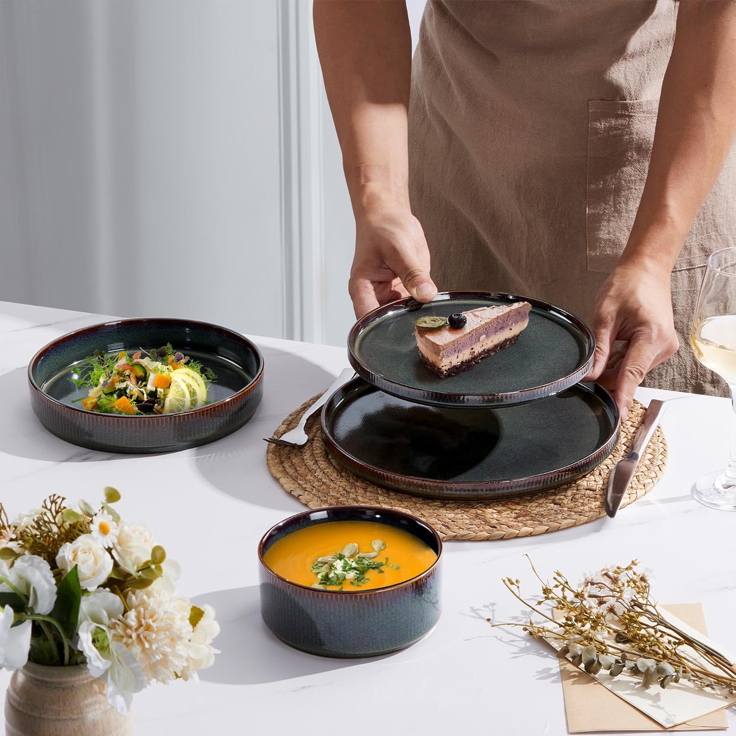- ELEGANT REACTIVE GLAZE DESIGN: Smooth glaze enhances surface hardness, Making it chip-resistant, scratch-resistant, fade-proof and durable, Simple and stylish glaze design brings a touch of elegance to your dining table, Reactive glaze makes each bowl and plate look unique yet attractive, Providing you with a different dining experience every time, Suitable for complementing any dining table setting