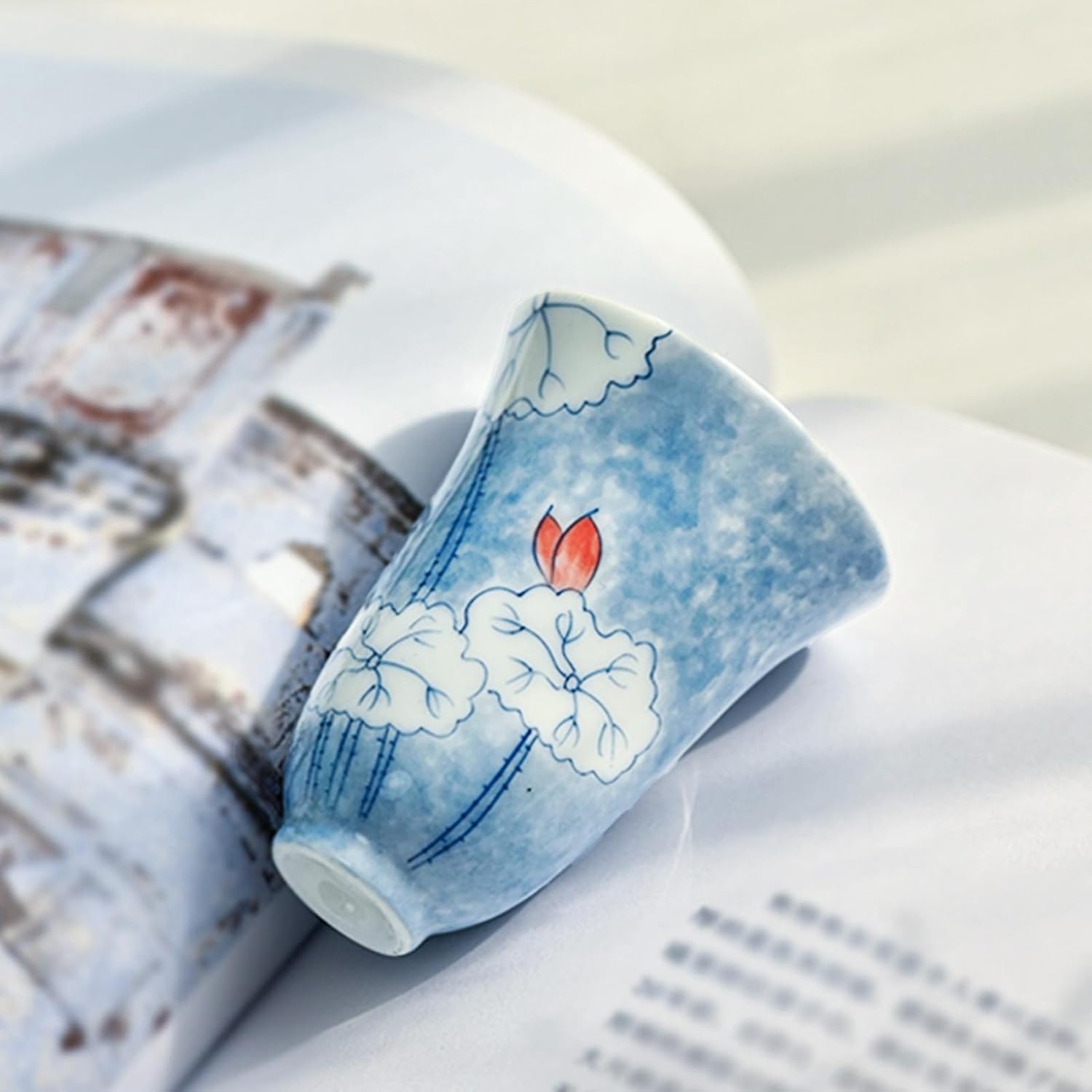 KAMMAK Ceramic Tea Cups Small, Cute Vintage Coffee Cup Set of 2, Porcelain Teacups Espresso Mug, 1.7oz Hand Painted Chinese Afternoon Tea Party Mugs, Birthday Gift for Women Men, Scented Lotus