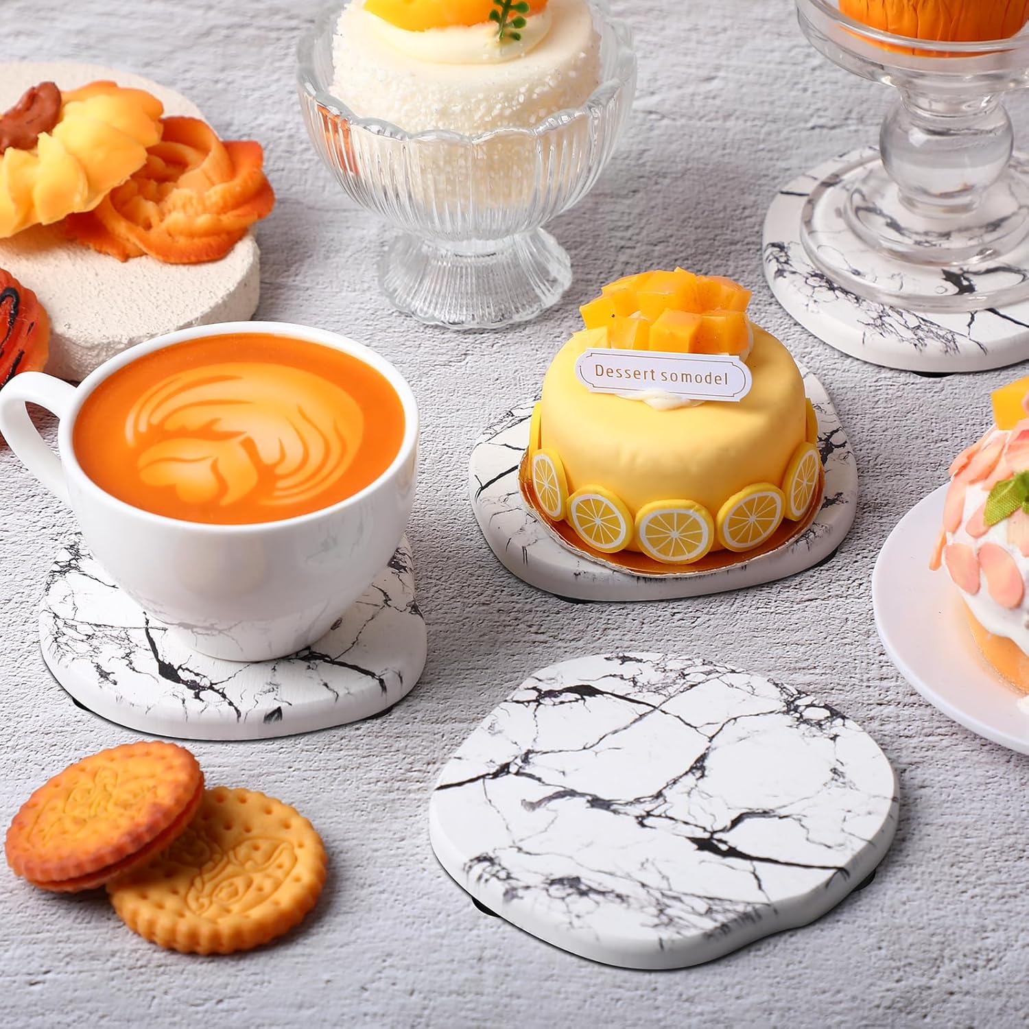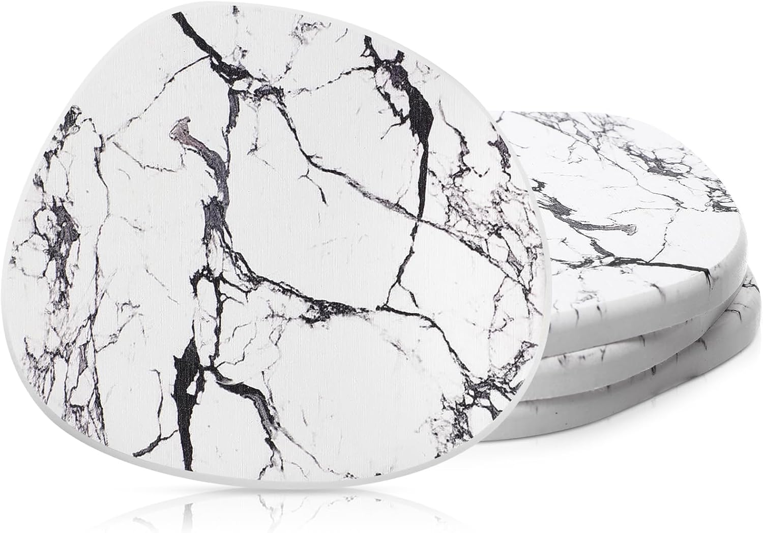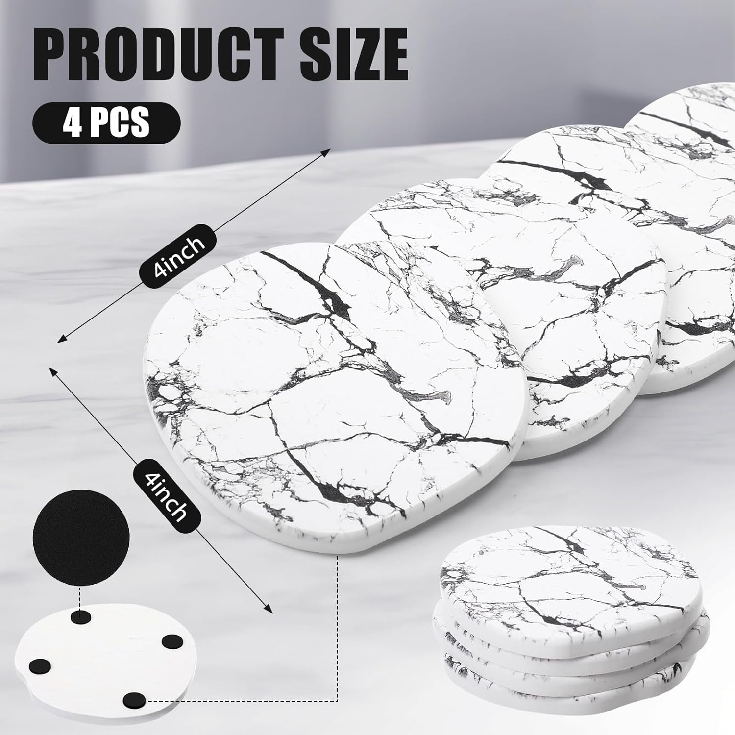 Diatomaceous Earth Coaster ,Set of 4,Unique White Absorbent Coasters for Drinks,Modern Aesthetic Instant Dry Stone Drink Coasters(4,Marble White)