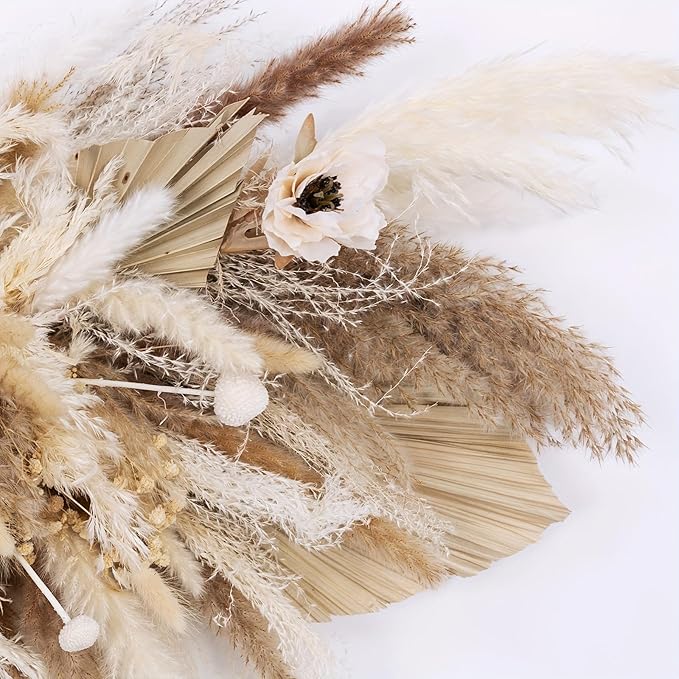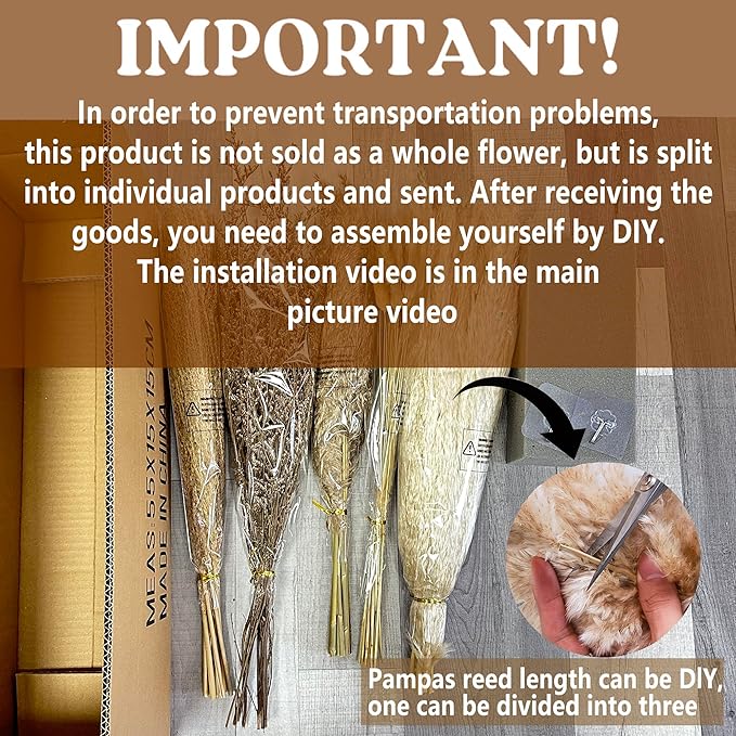 - No-Maintenance Natural Decor – Handcrafted from real dried pampas and reed grass for a sustainable, eco-conscious display piece.