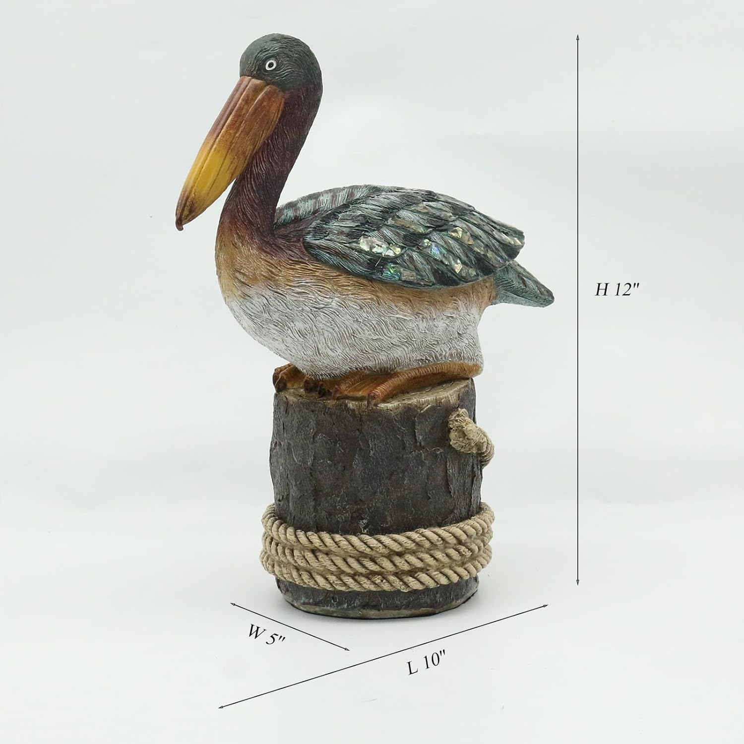 Lukitas Perching Pelican Statue and Sculpture Decor, Coastal Ocean Bird Figurine, Creative Decorative Ornament for Home Garden Yard Lawn Outdoor, Resin 12''