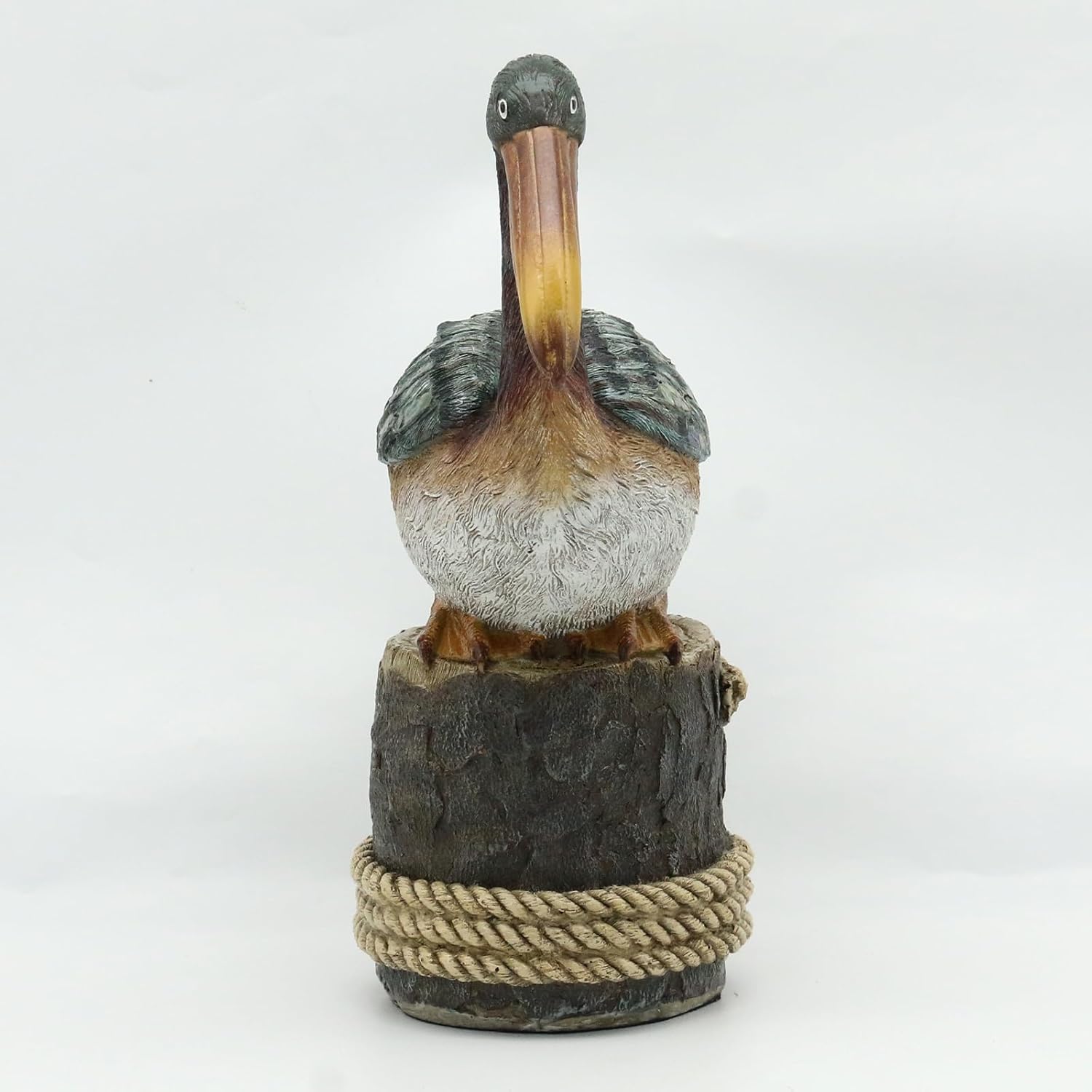 - 【Pelican Sculpture】:This exquisite resin statue captures a pelican crouching on a stump