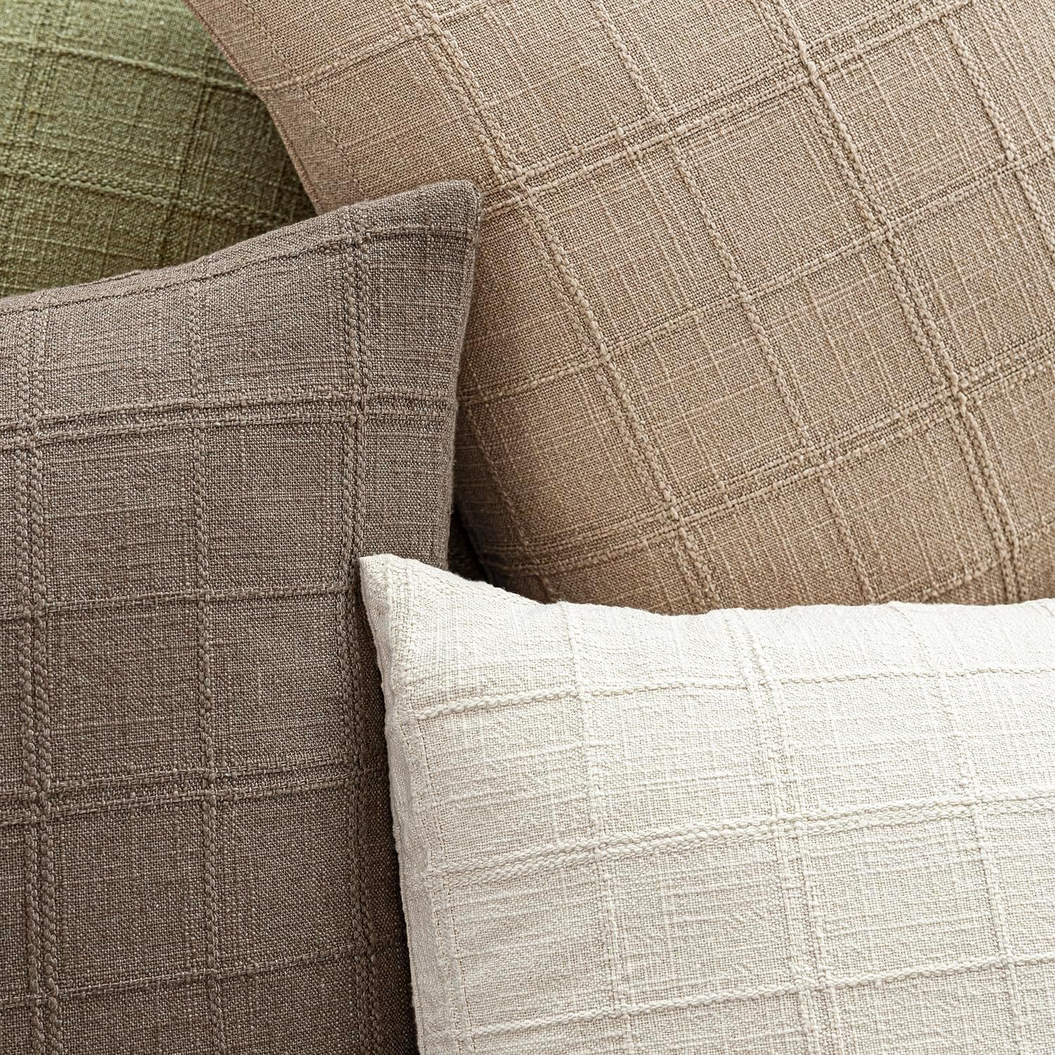 Foindtower Set of 2 Decorative Linen Check Throw Pillow Covers Neutral Farmhouse Vintage Cushion Covers Modern Coastal Boho Home Decor for Sofa Chair Couch Bedroom Living Room,26×26 Inch,Camel