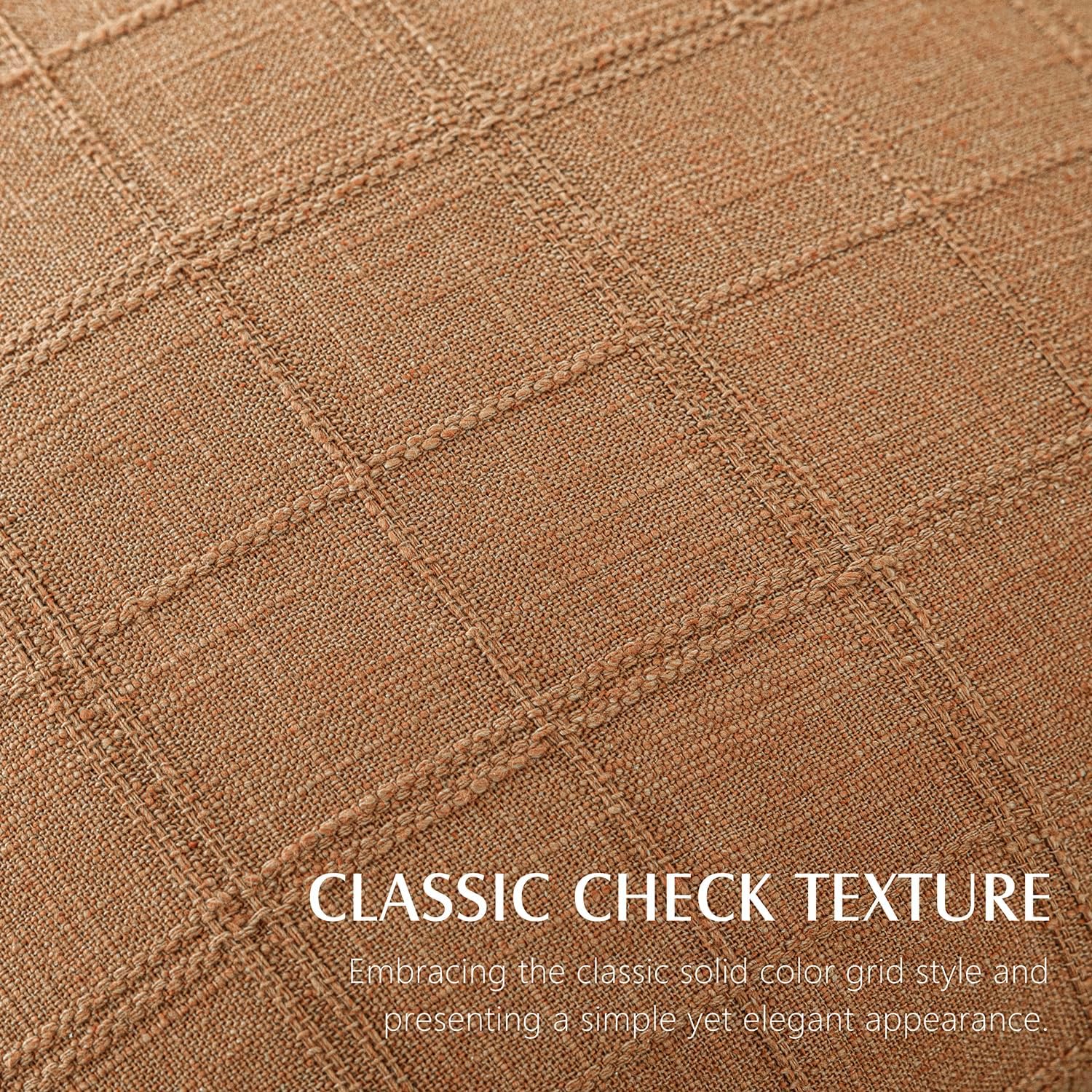 Foindtower Set of 2 Decorative Linen Check Throw Pillow Covers Neutral Farmhouse Vintage Cushion Covers Modern Boho Home Decor for Sofa Chair Couch Bedroom Living Room,26×26 Inch,Brick