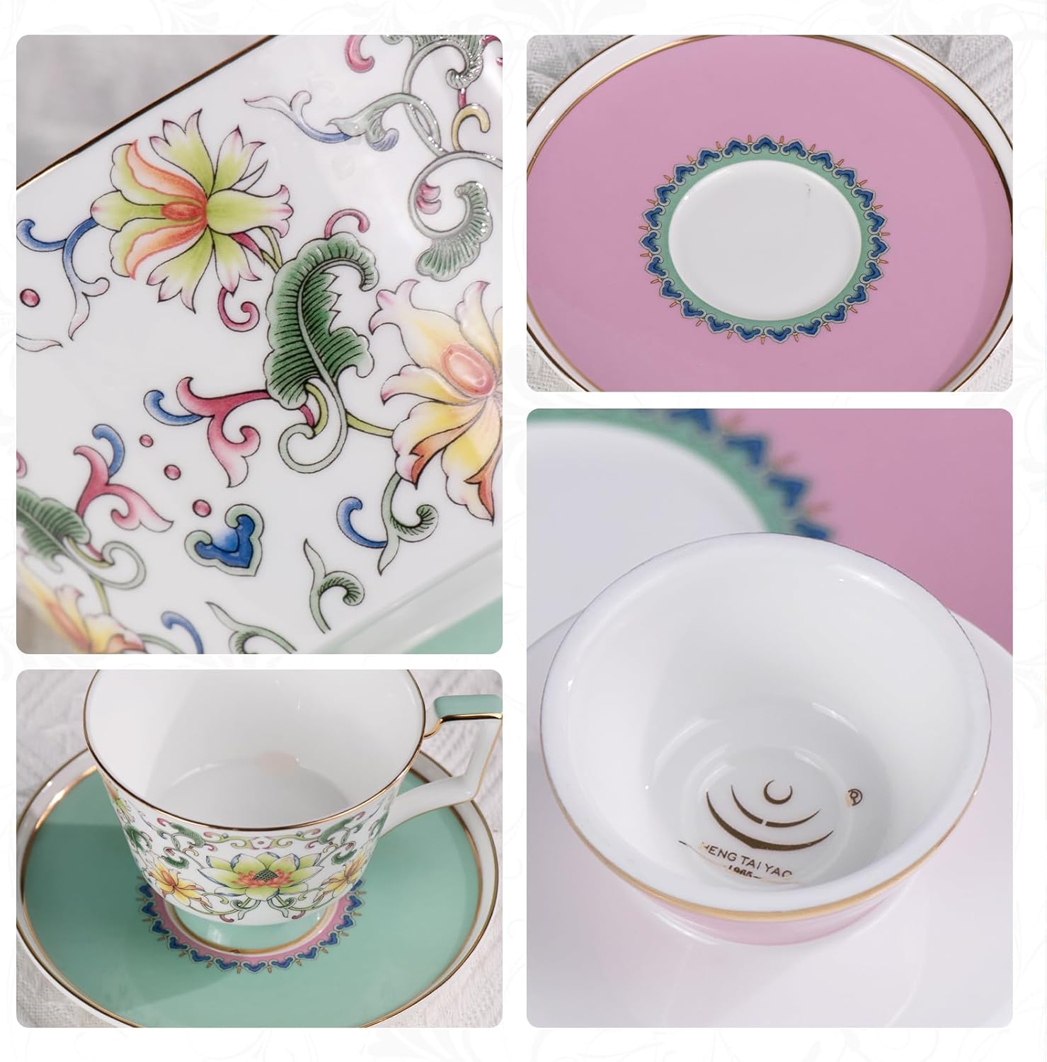 - Thoughtful Gift for Tea Enthusiasts With detailed floral art, elegant color coordination, and gold detailing, this set makes a charming gift for birthdays, Mother’s Day, or anyone who appreciates refined tableware.