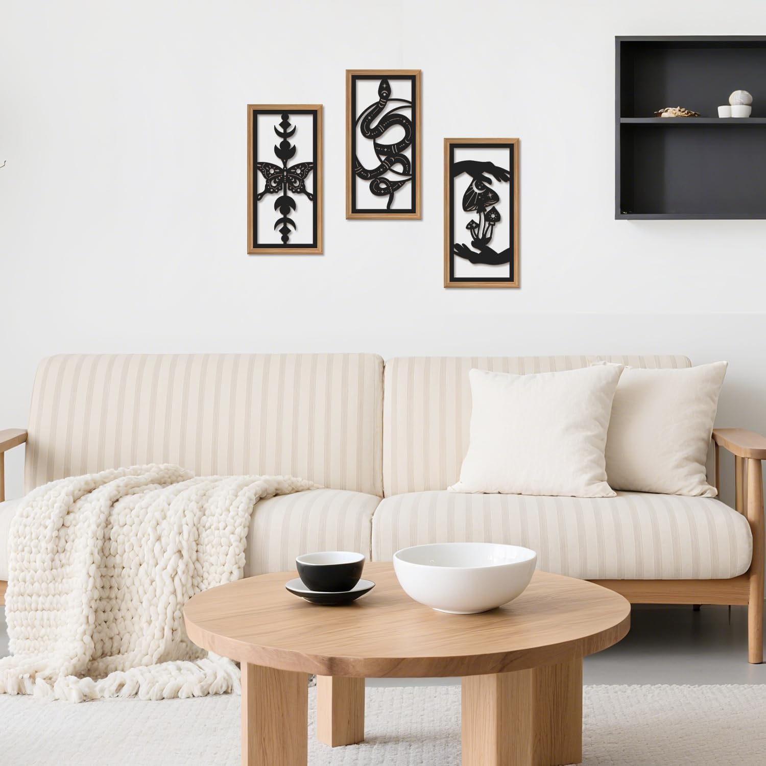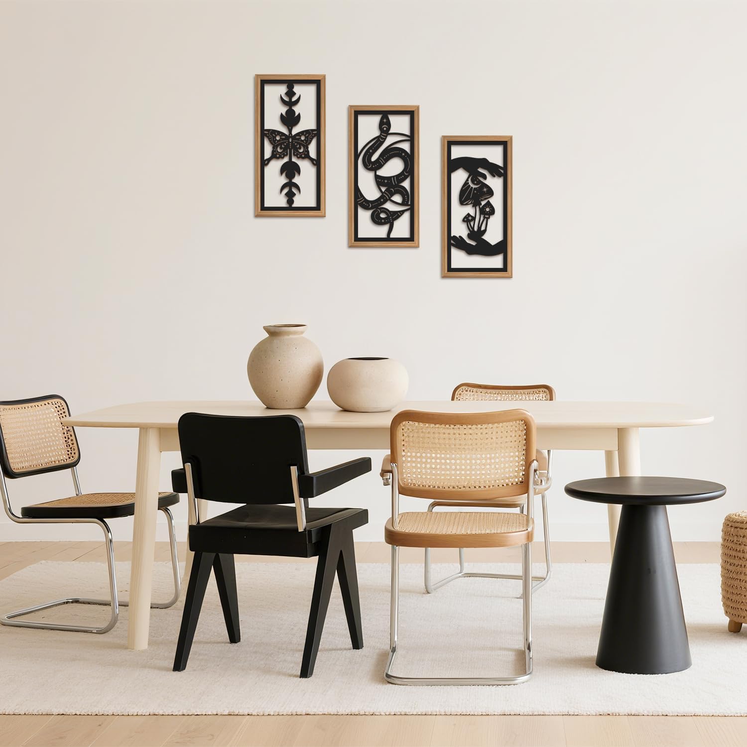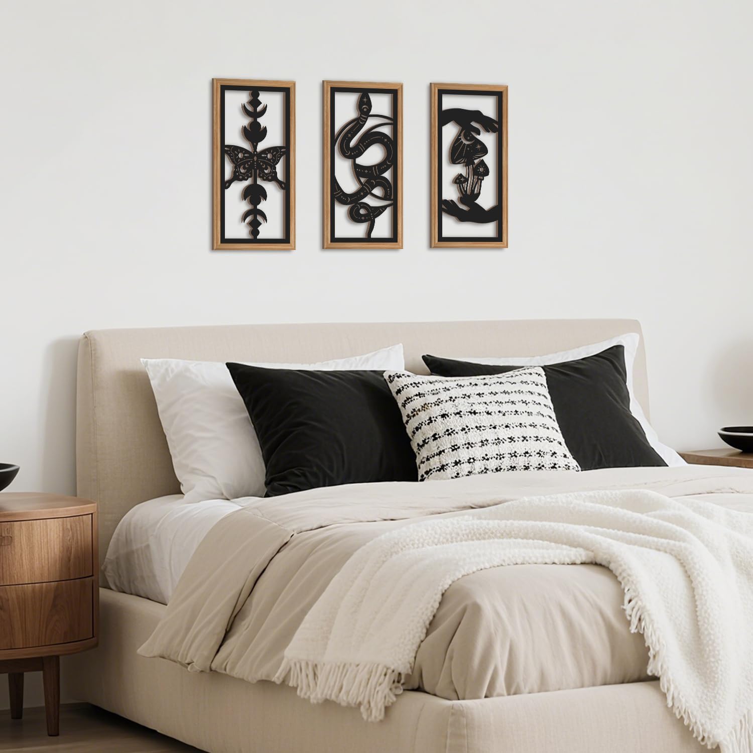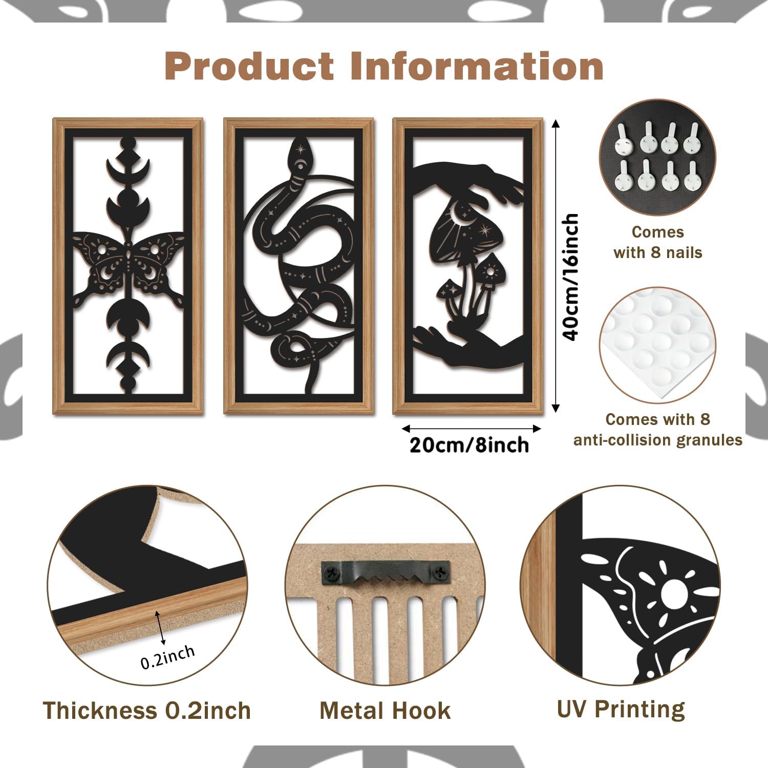 IARTTOP 3 Pcs Black Gothic Wall Art Boho Witchy Moon Phases Butterfly Wood Wall Decor Snake Decor Hanging Art Dark Mushroom Artwork Home Decor for Apartment Living Room Bedroom 7.9 x15.8 Inch