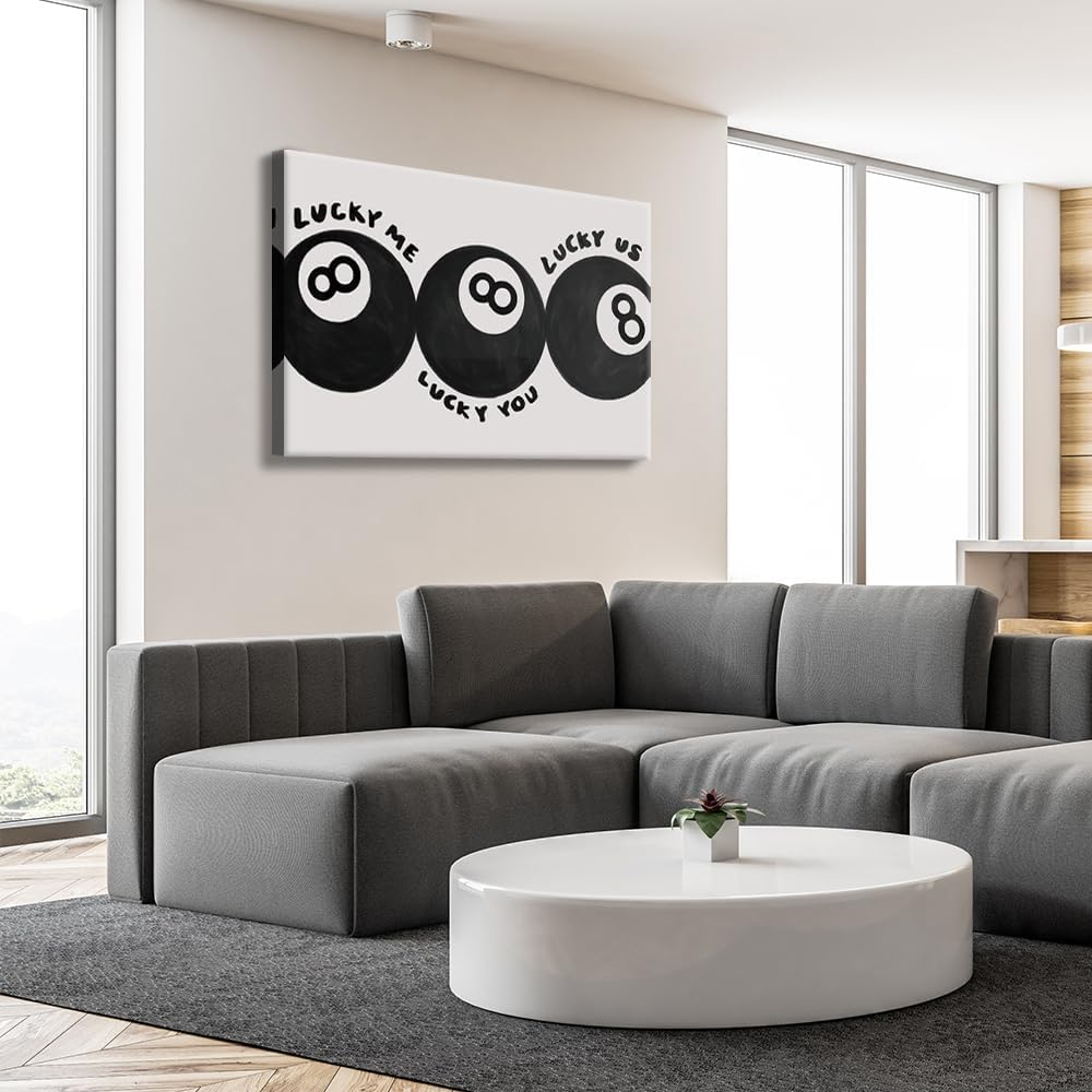 Lucky Me Lucky You Lucky Us Quote Cool Canvas Wall Art Vintage Black 8 Balls Poster Playful Billiards Print Paintings Trendy Aesthetic Pictures Decor for Home Game Room Bar Cart 12x16inch Framed