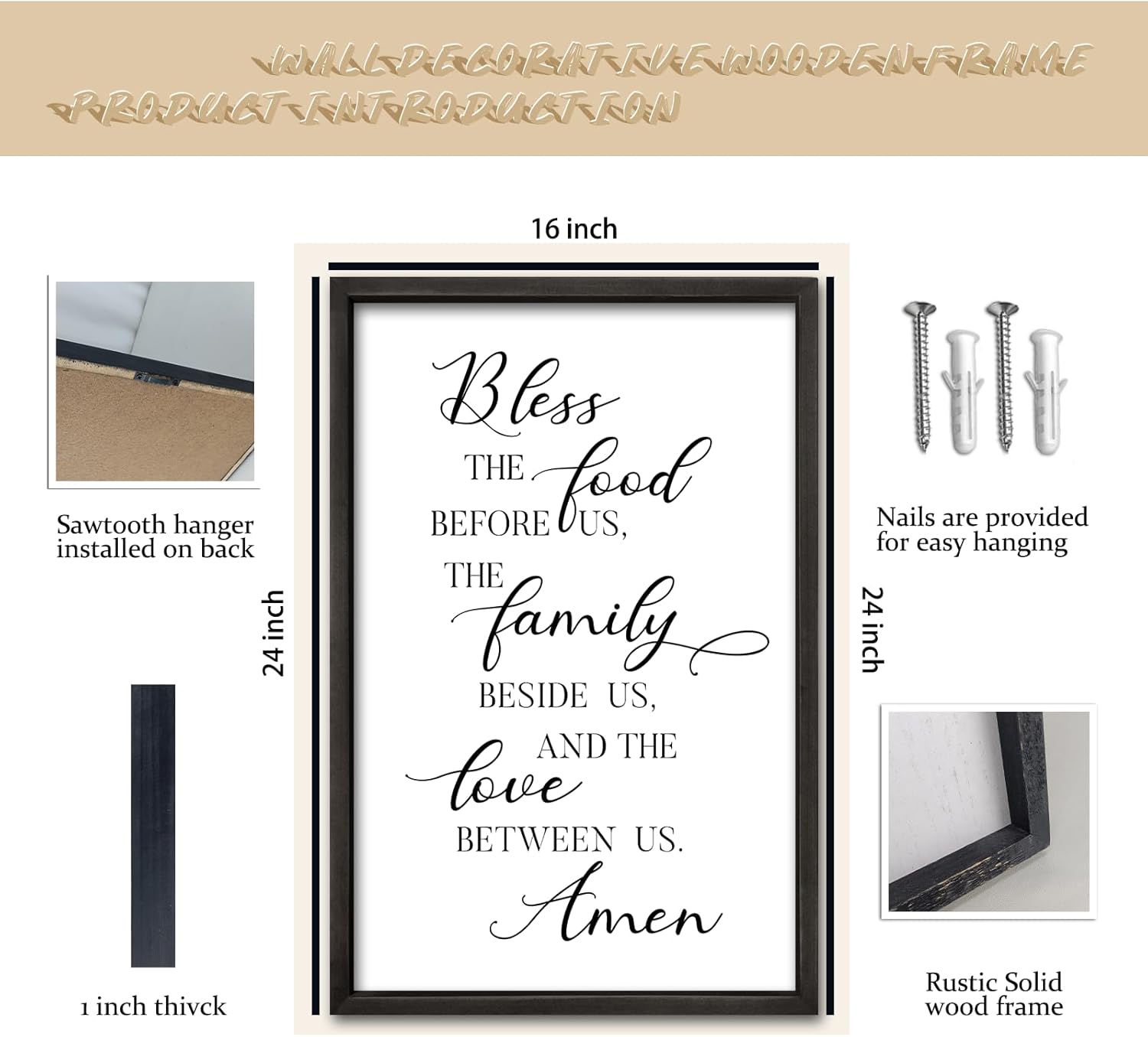 - 【Perfect Craftsmanship】: This decorative piece measures 24 inches x 16 inches x 1 inch and weighs 1.5 pounds. The frame is hand-dyed and the font is UV printed. The color is clear and the introduction is beautiful.