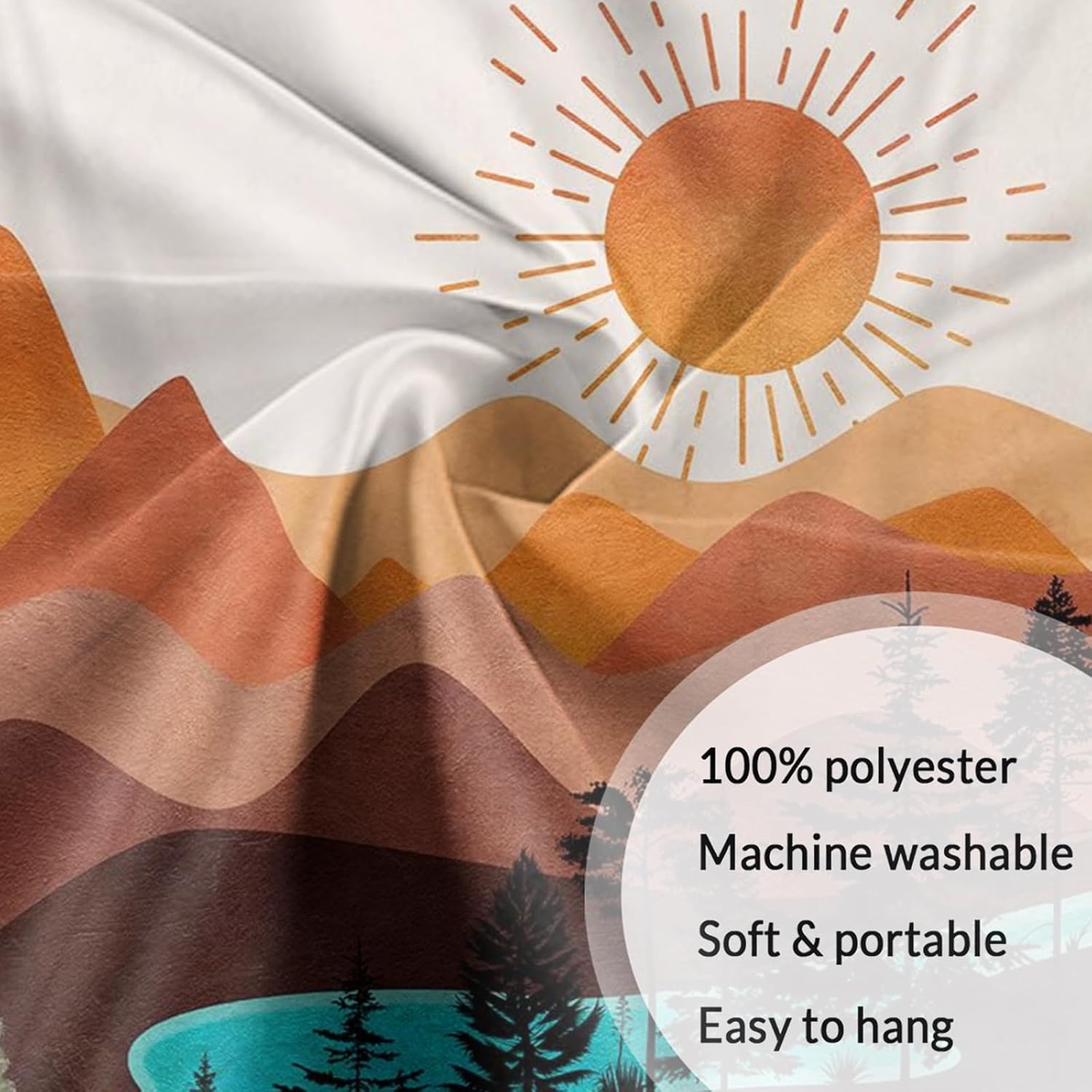 DYNH Boho Mountain Vertical Tapestry, Nature Forest Tree Lake Sun Tapestries, Bohemian Minimalist Mid Century Desert Tapestry Wall Hanging for Bedroom College Dorm Asthetic Home Decor,36X48IN