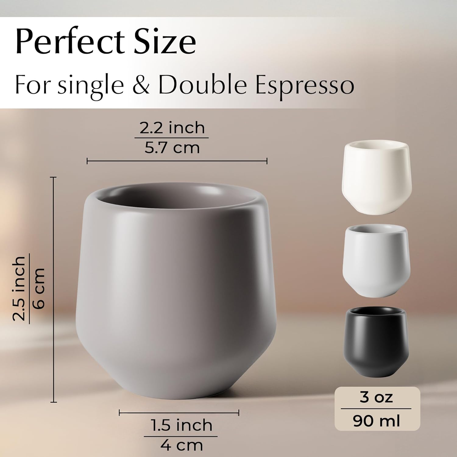 - ππππππ πππ πππππππ ππππππ β These handleless espresso cups boast a sleek, modern cone shape that makes them a standout addition to any coffee loverβs collection. The small but generous 3 oz capacity is perfectly suited for a double shot of espresso or a rich, aromatic cortado. The elegant matte finish adds a sophisticated touch, making these cups not just functional but a beautiful statement piece for any coffee bar or kitchen.